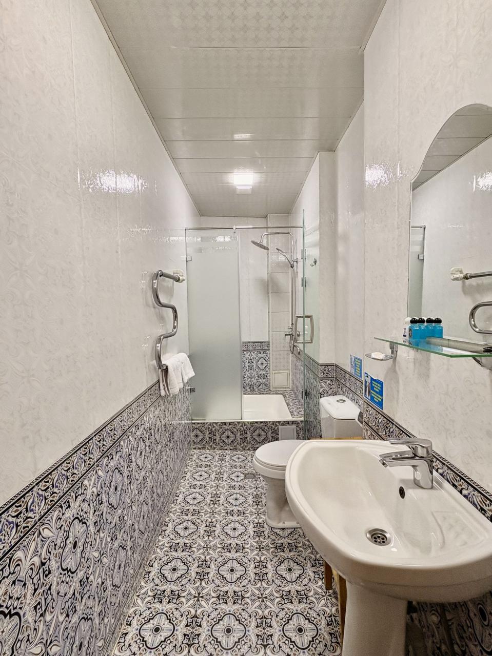 壁に貼られたタイルの幾何学模様も可愛くて、きれい! -