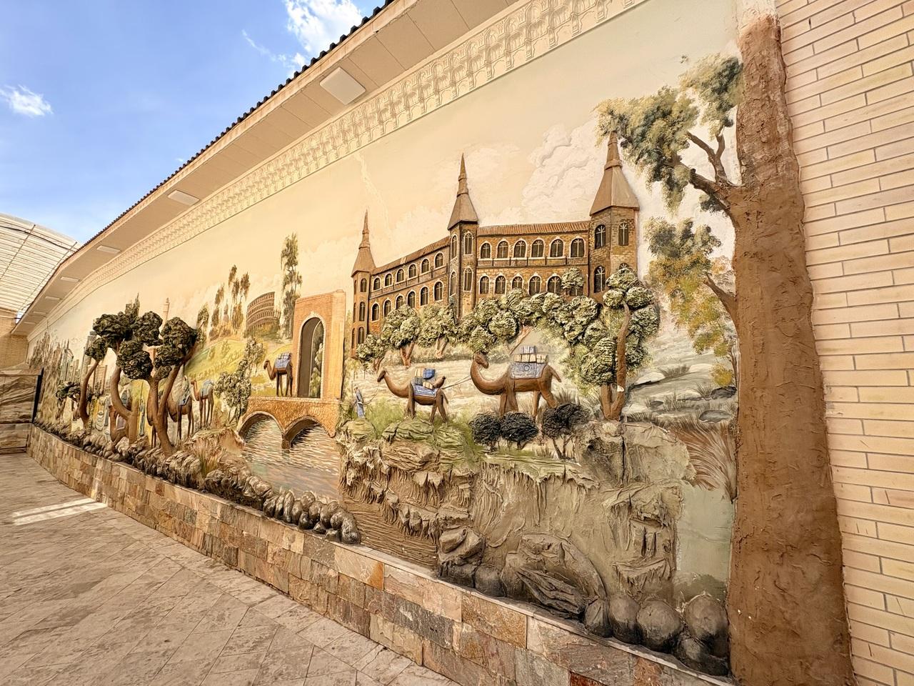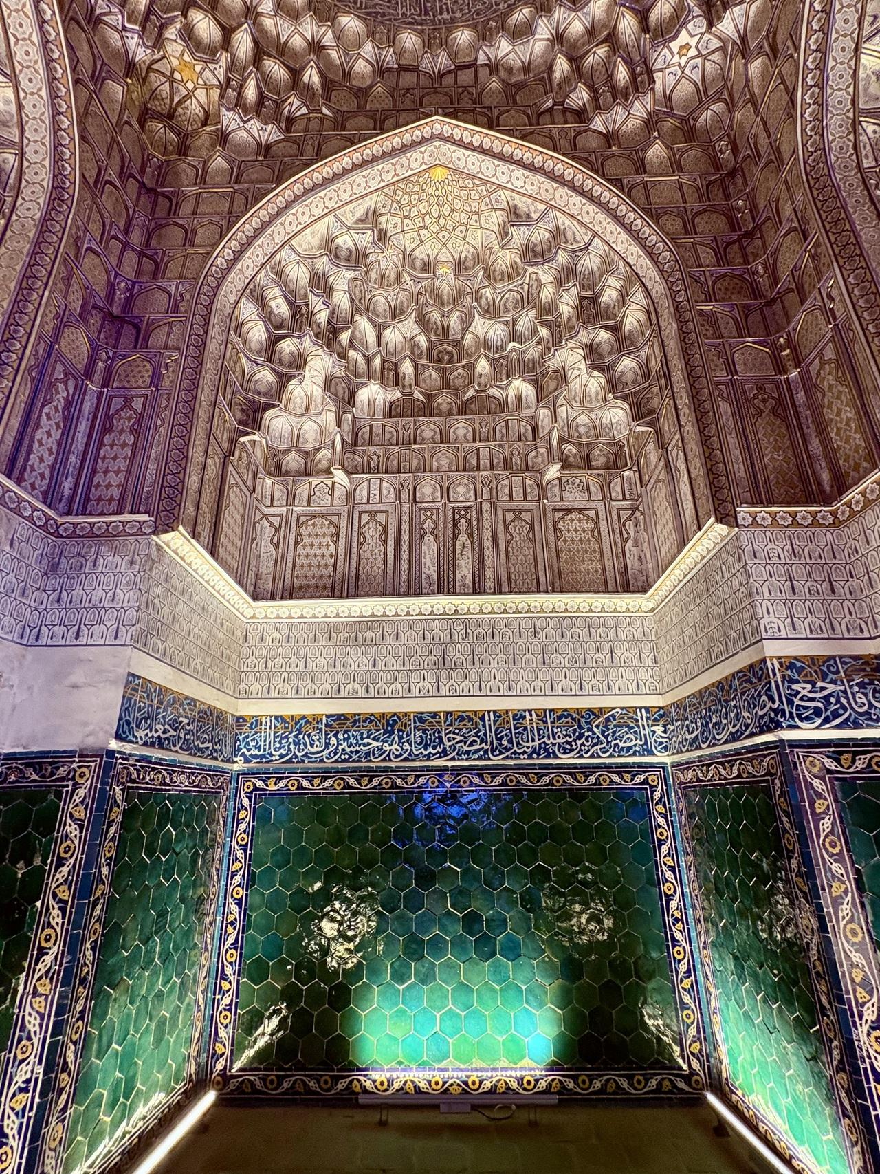 ティムールの妹の廟の内部にはイスラム建築らしくない中国風の絵画があります。他の廟にはなかった特別な空間です。