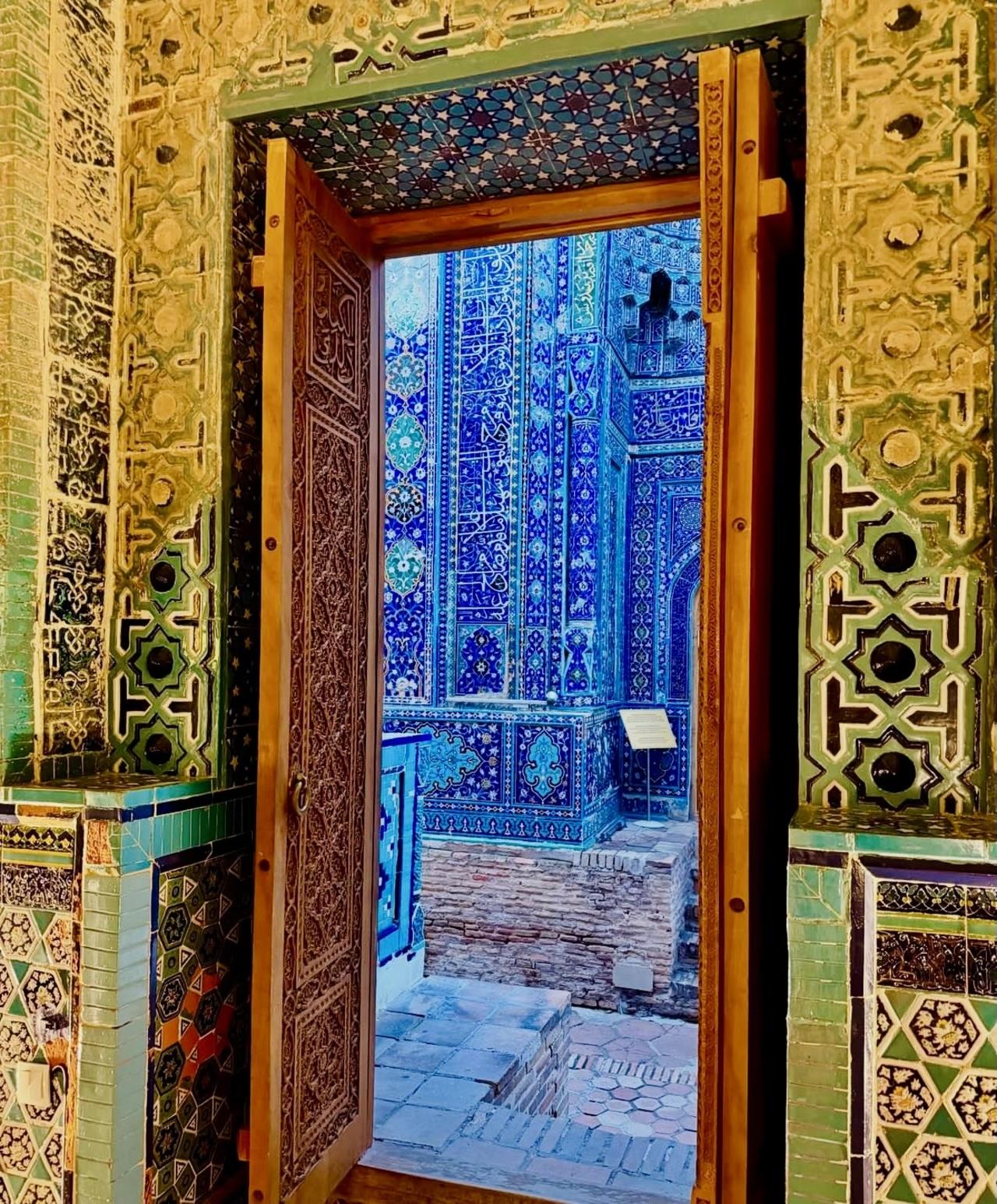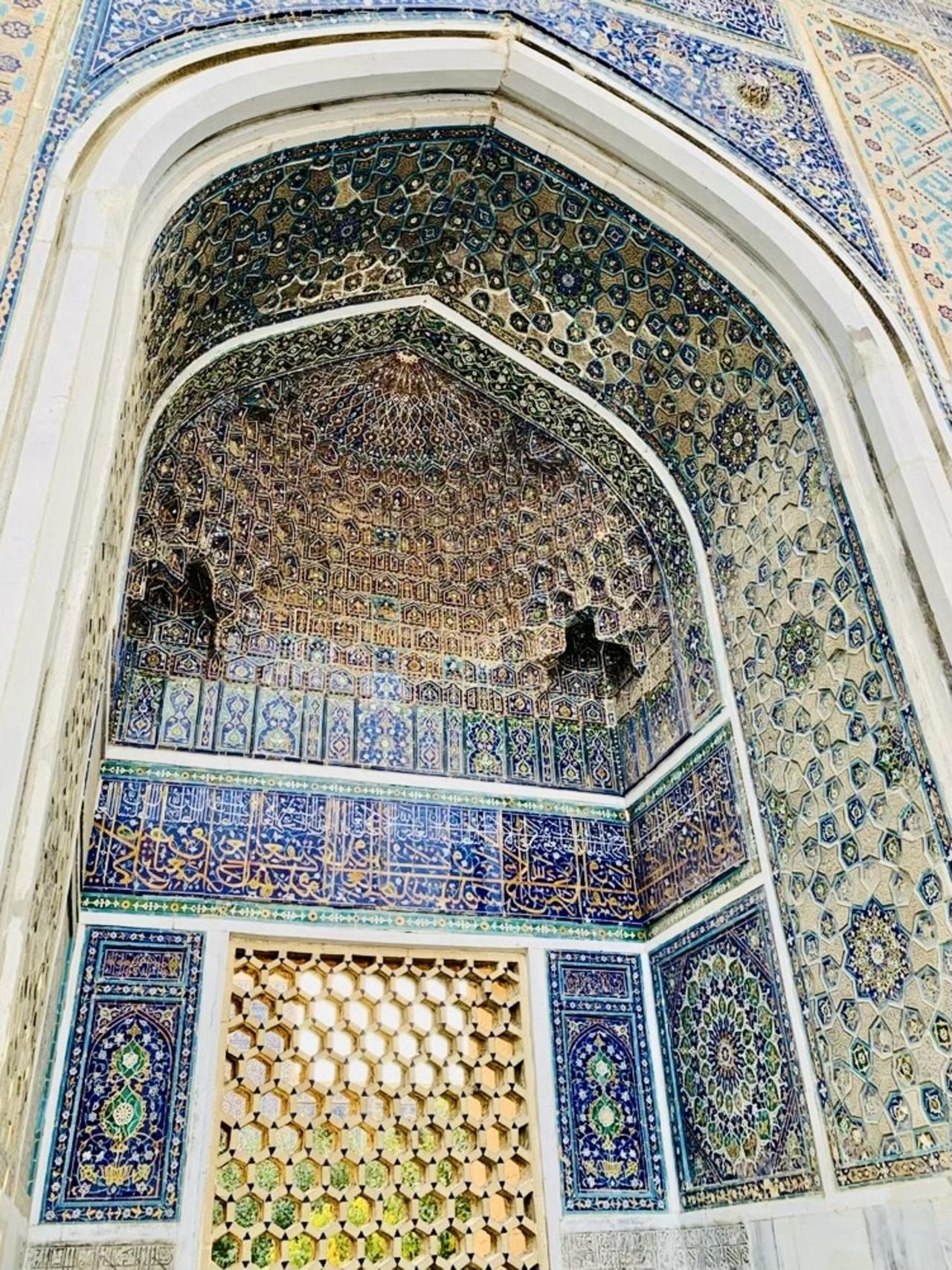 元々「サマルカンドブルー」と呼ばれる鮮やかな青色タイルも、中国の陶磁器とペルシャの顔料が出合って誕生したものだそうです。 -