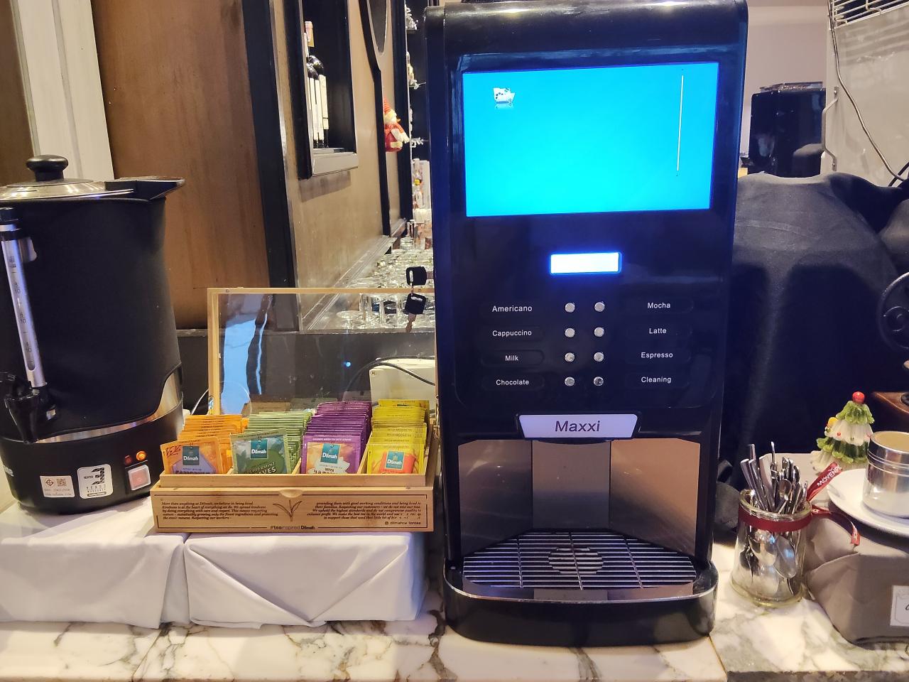 こちらもコーヒーマシーンと紅茶。