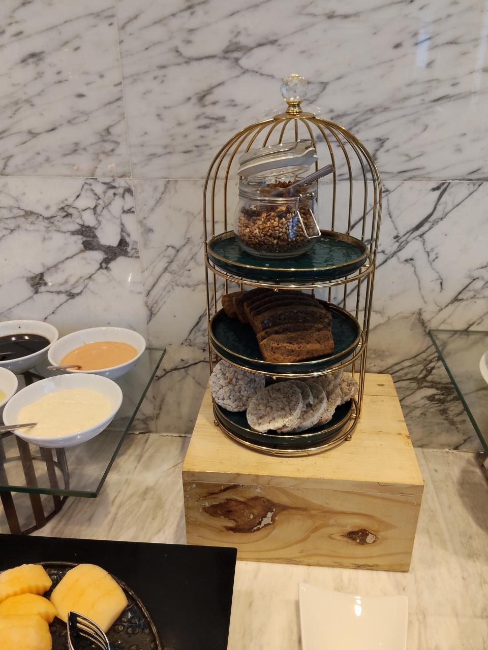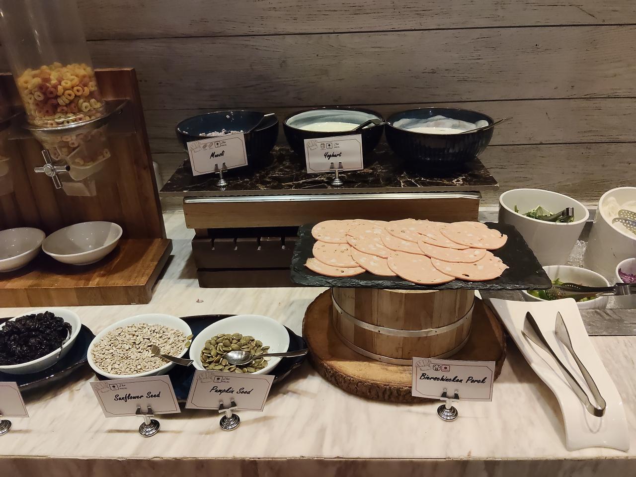 ハム、ヨーグルト、ミューズリー、シード類。