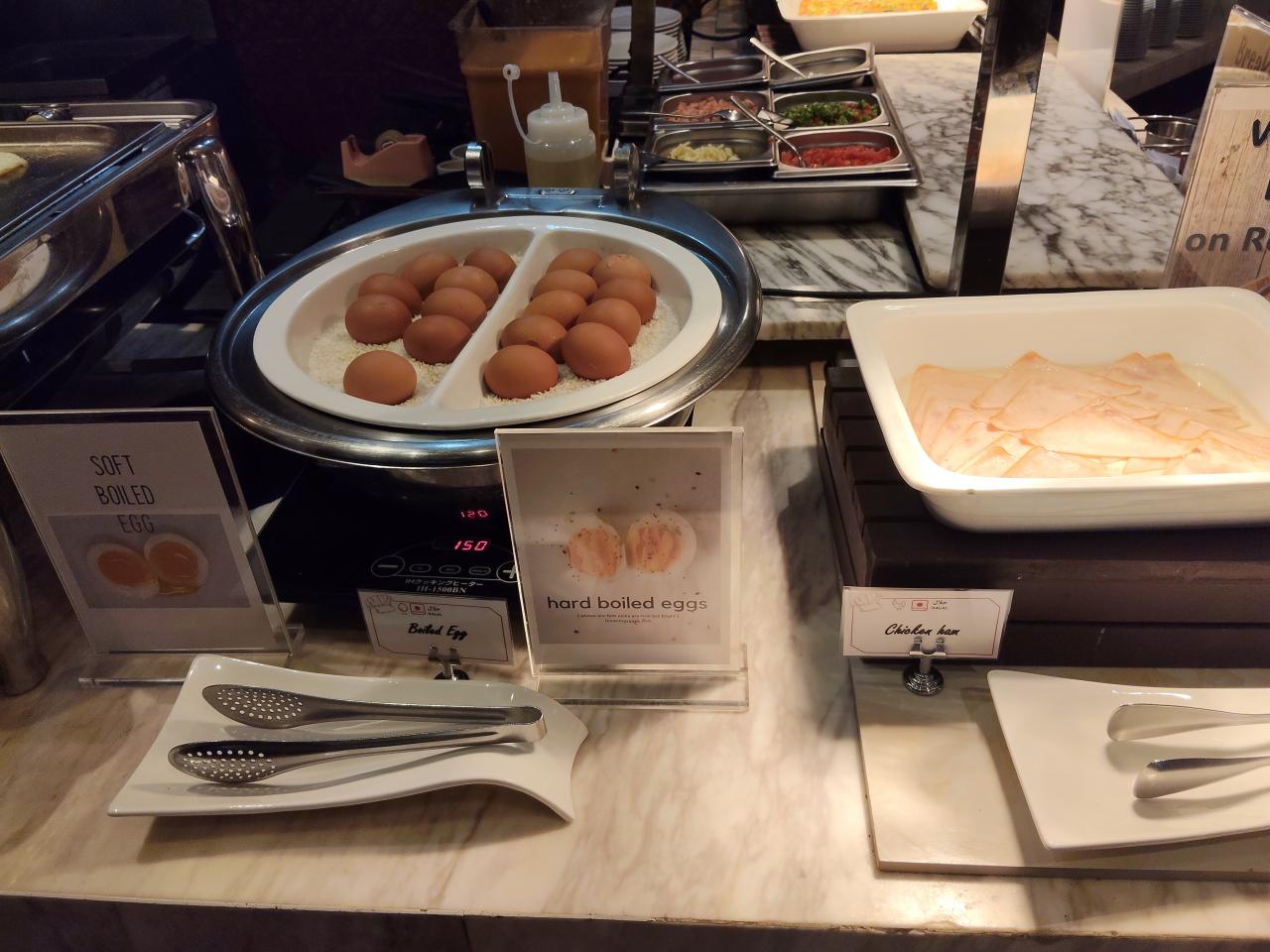 ゆで卵2種とチキンハム。