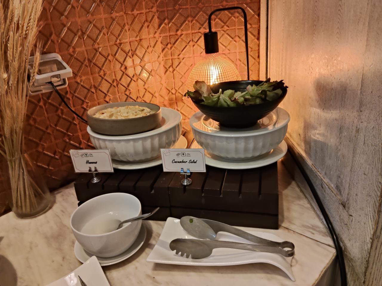 きゅうりのサラダとフムス。