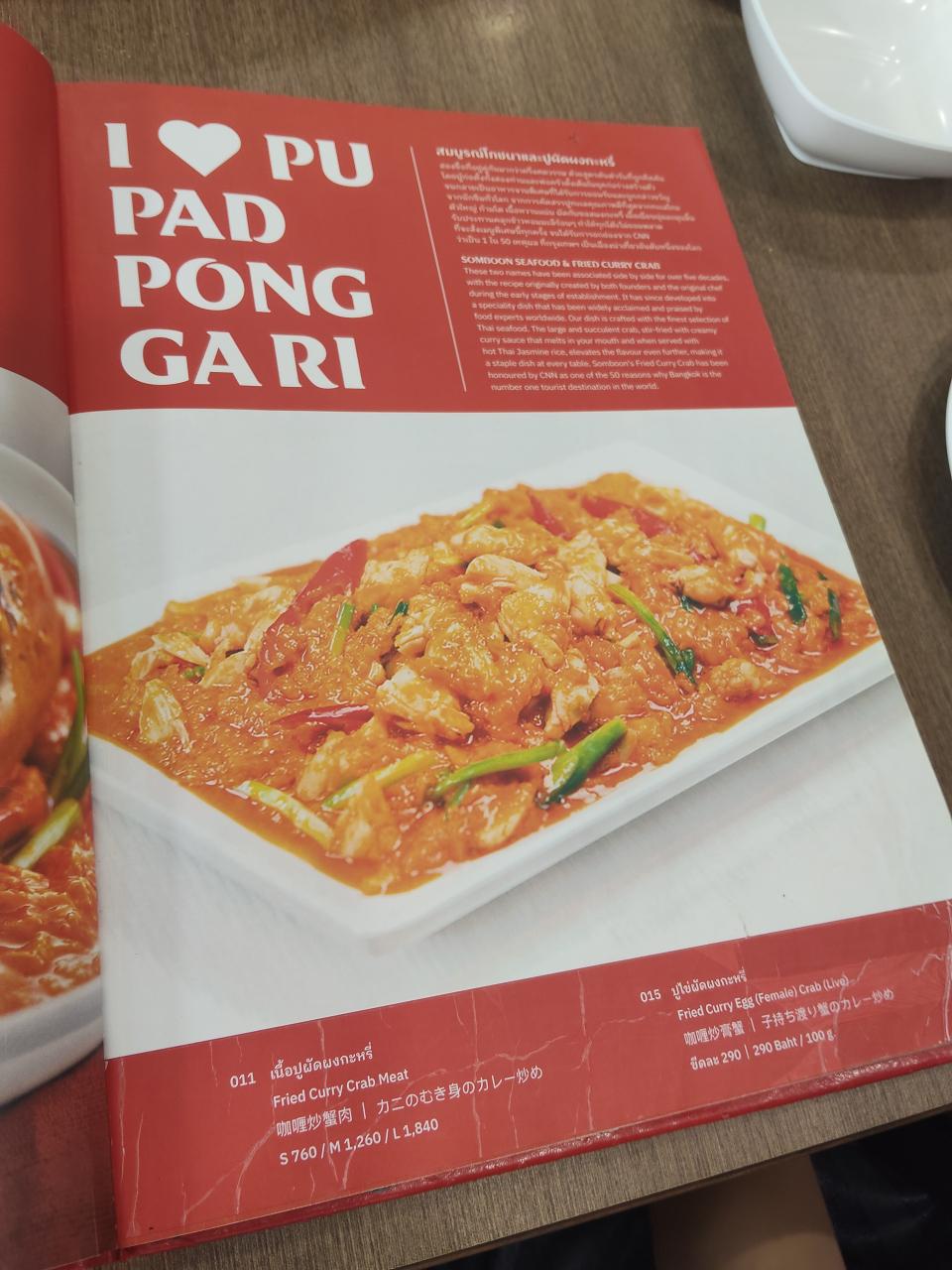 ソンブーンは旦那が一人旅の際に訪れたらしく、プーパッポンカレーは小でも大きかったとのこと。