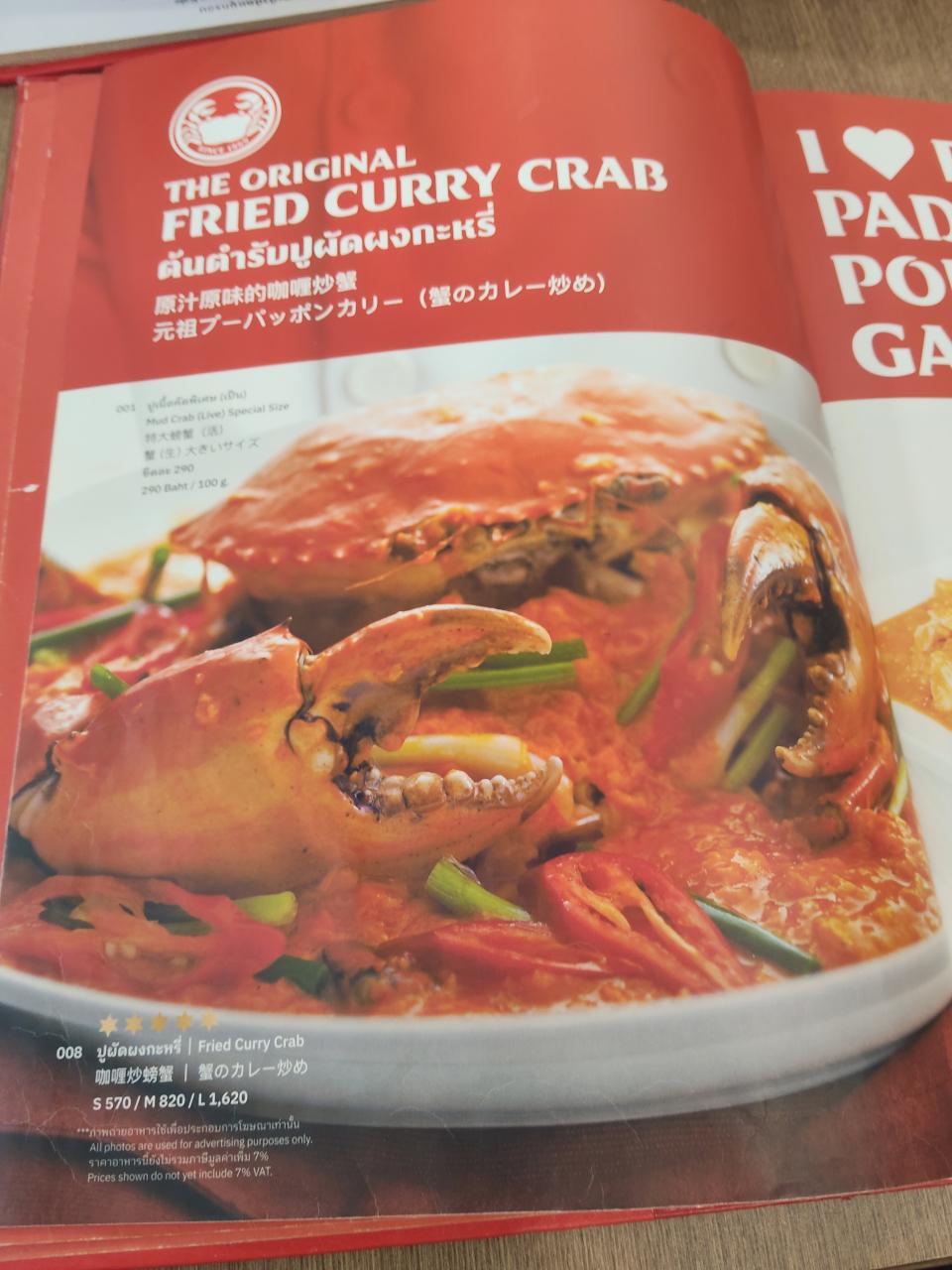 空心菜炒めはL、プーパッポンカレーはSだったかな?