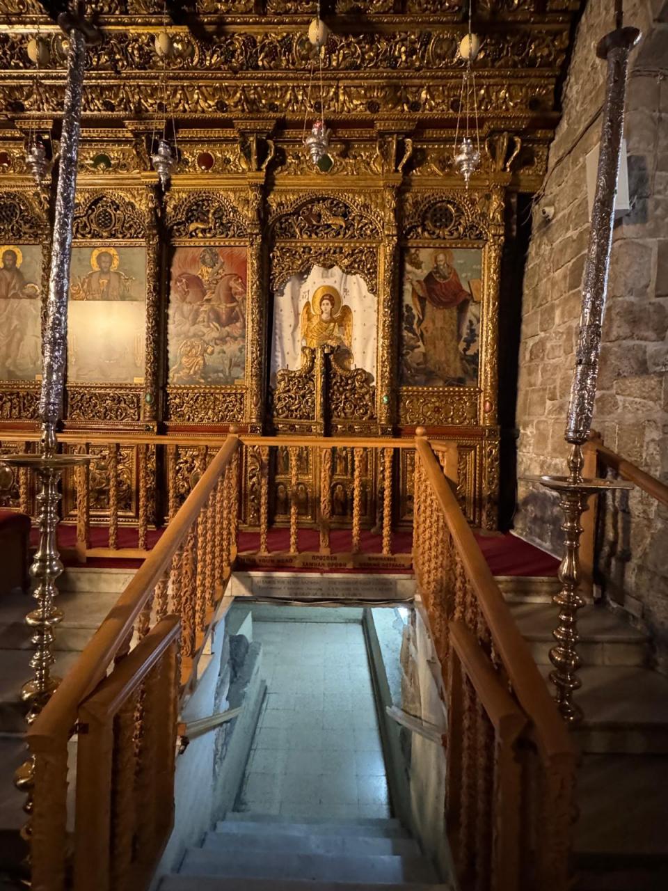 教会の入り口はイコノスタシスの右側で奥に階段があります。