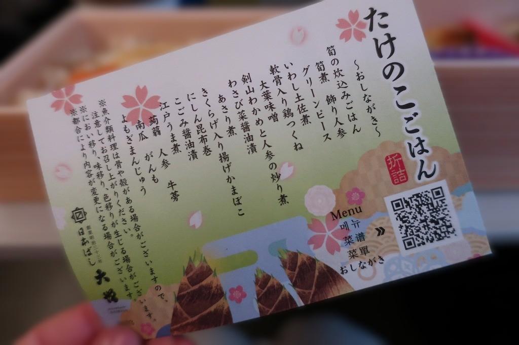 春らしい「たけのこごはん」弁当があったので即決しました。 -