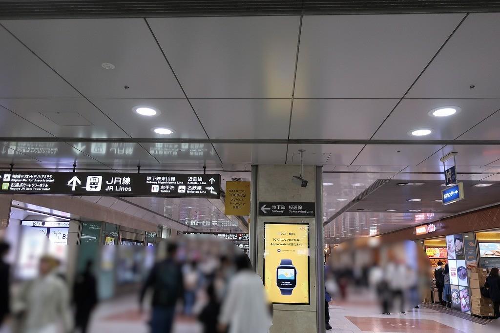 名古屋に到着しました!新幹線改札を出て地下鉄に向かうところ。地下鉄は土日祝と毎月8日であれば、620円で地下鉄・市バス全線で利用できる一日券「ドニチエコきっぷ」が断然お得です。