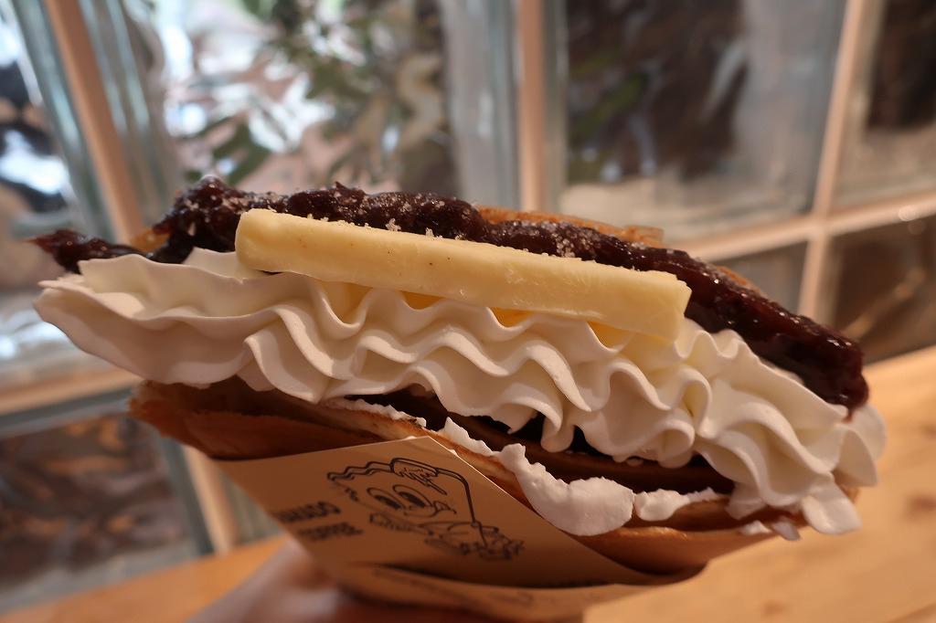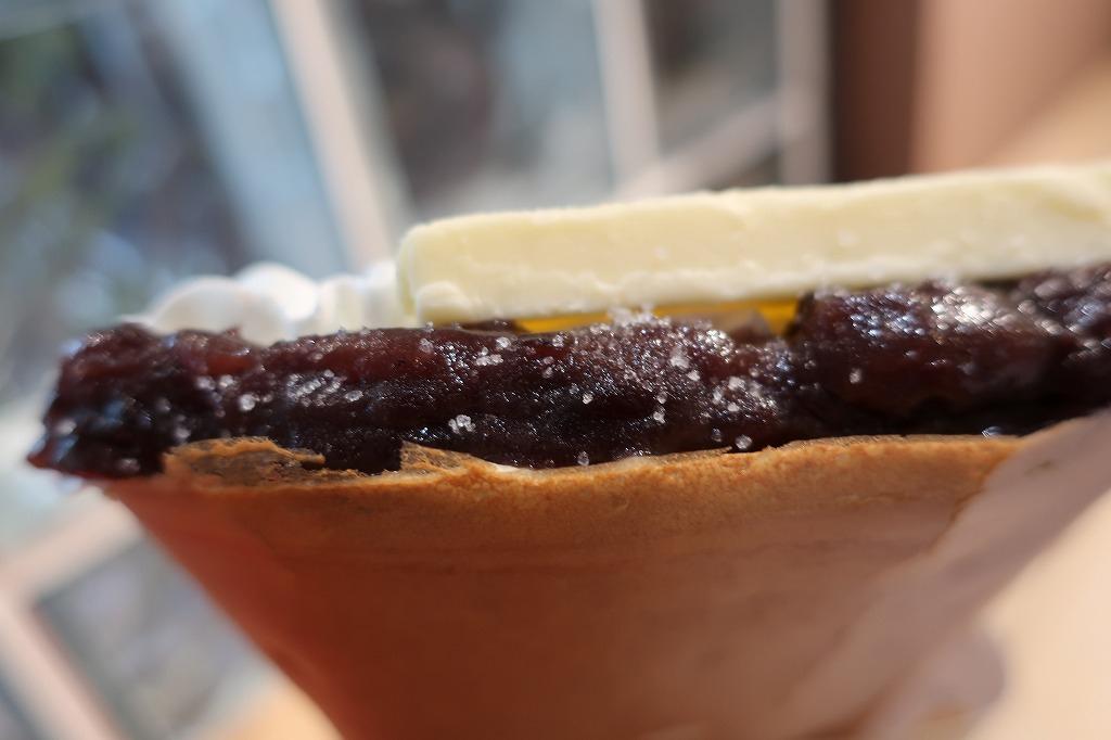 皮がパリパリらしいというのと、このビジュアルで気になっていたクレープ。小倉あんバターをチョイスしました。
