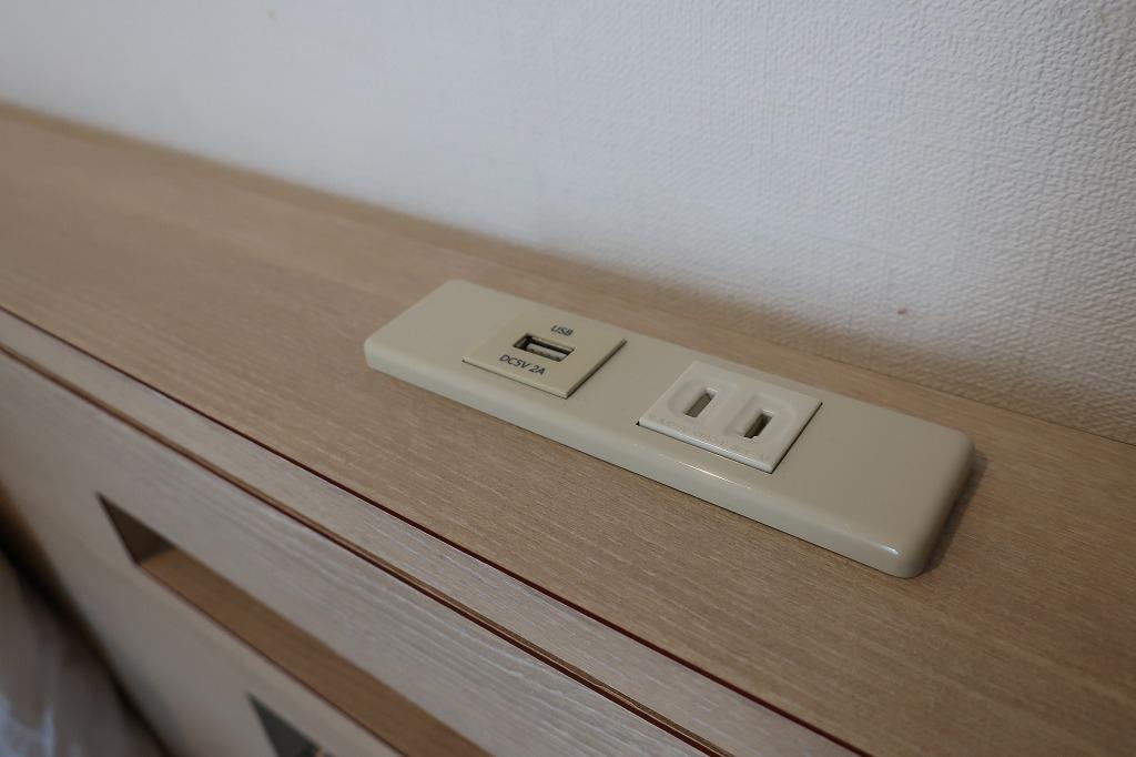 他にテーブルの方にも2か所あり、コンセントが充実しています。 -