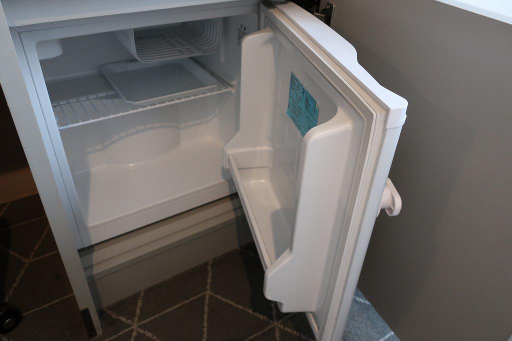 冷蔵庫は空でこのキャパ。使うときは電源をONにする必要があります。