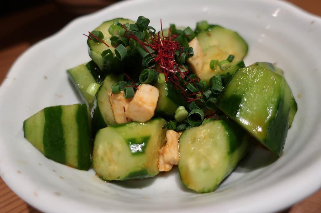 辛味はそこまで感じないので、さっぱりな箸休めに良いですね。小さい白っぽいのは鶏肉でした。 -