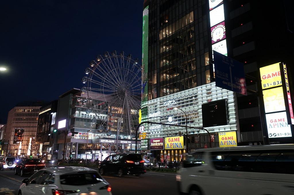 観覧車はヨドバシカメラの入っているビルにあります。スピードは驚くほどゆっくり。 -