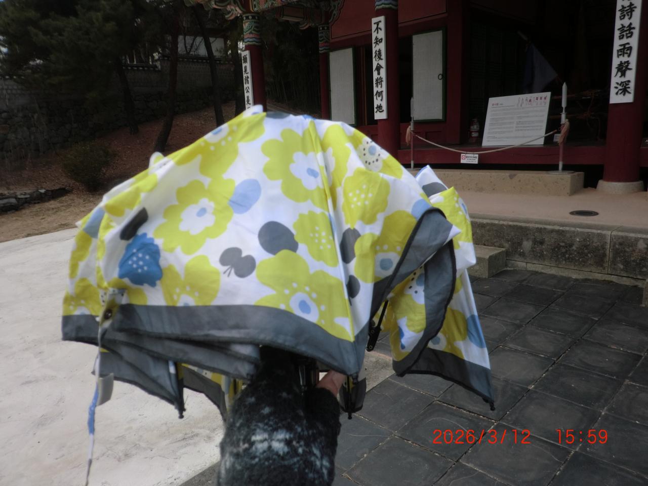 この頃から、本格的に雨がポツポツ(*´Д`)折り畳み傘を開く。