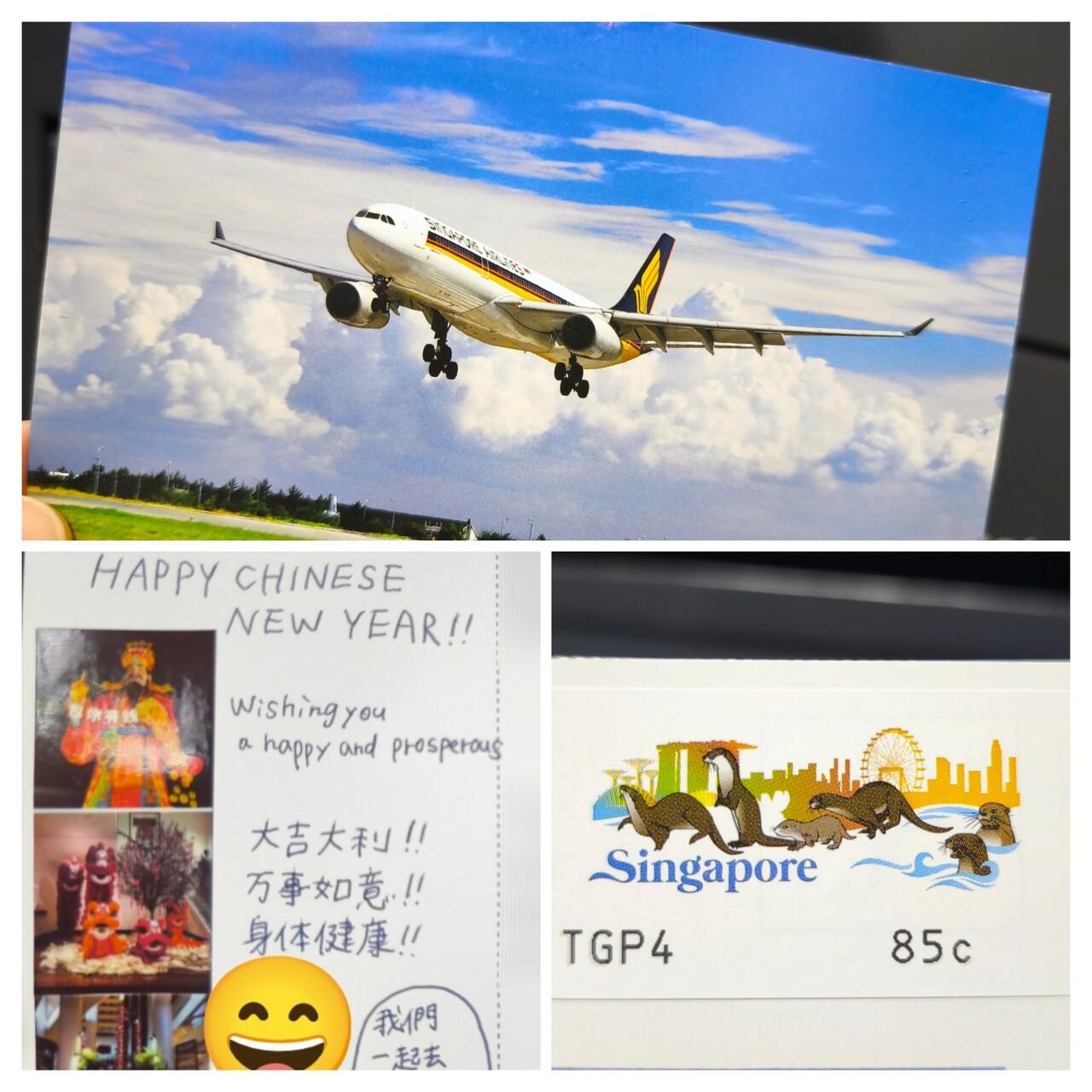 年末関空関係者のご挨拶でいただいたカレンダーについていたシンガポール航空のポストカードにメッセージを書きました(Cathayで来ましたが…w)