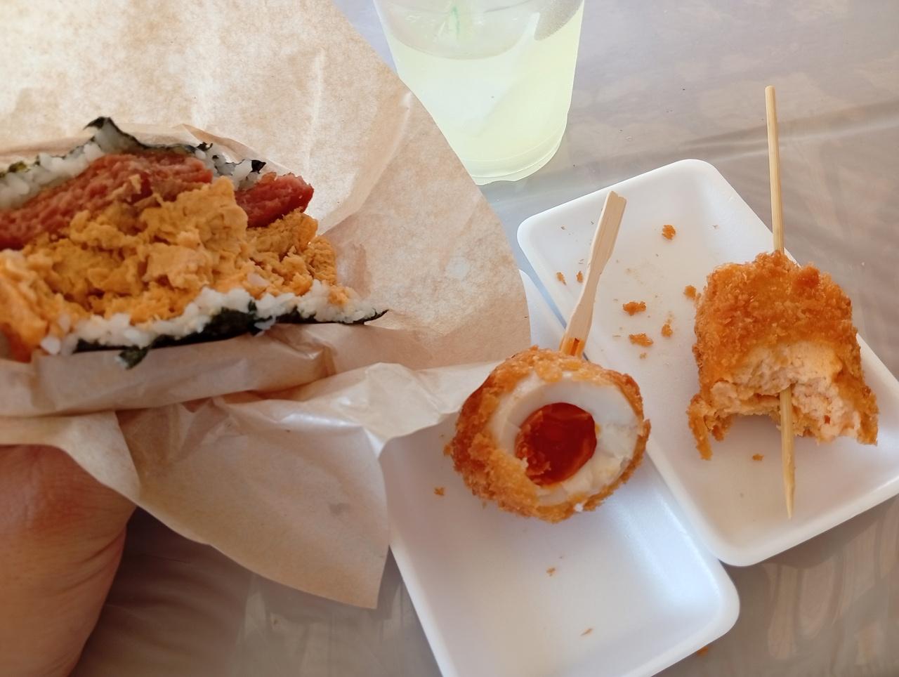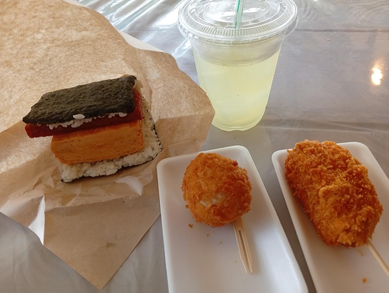 スパムてんぷらともずくてんぷら