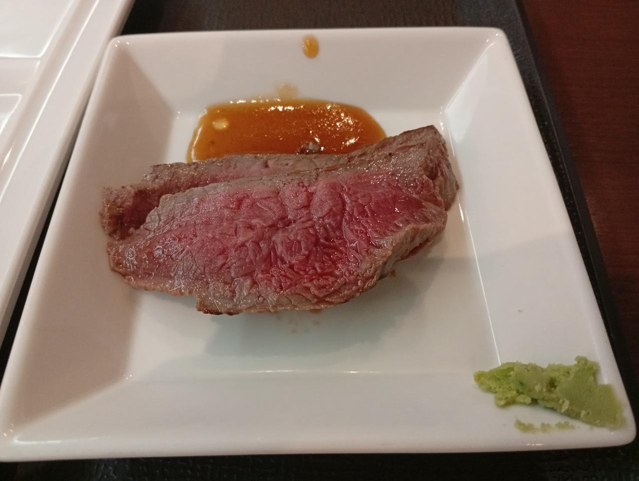 ステーキはレア