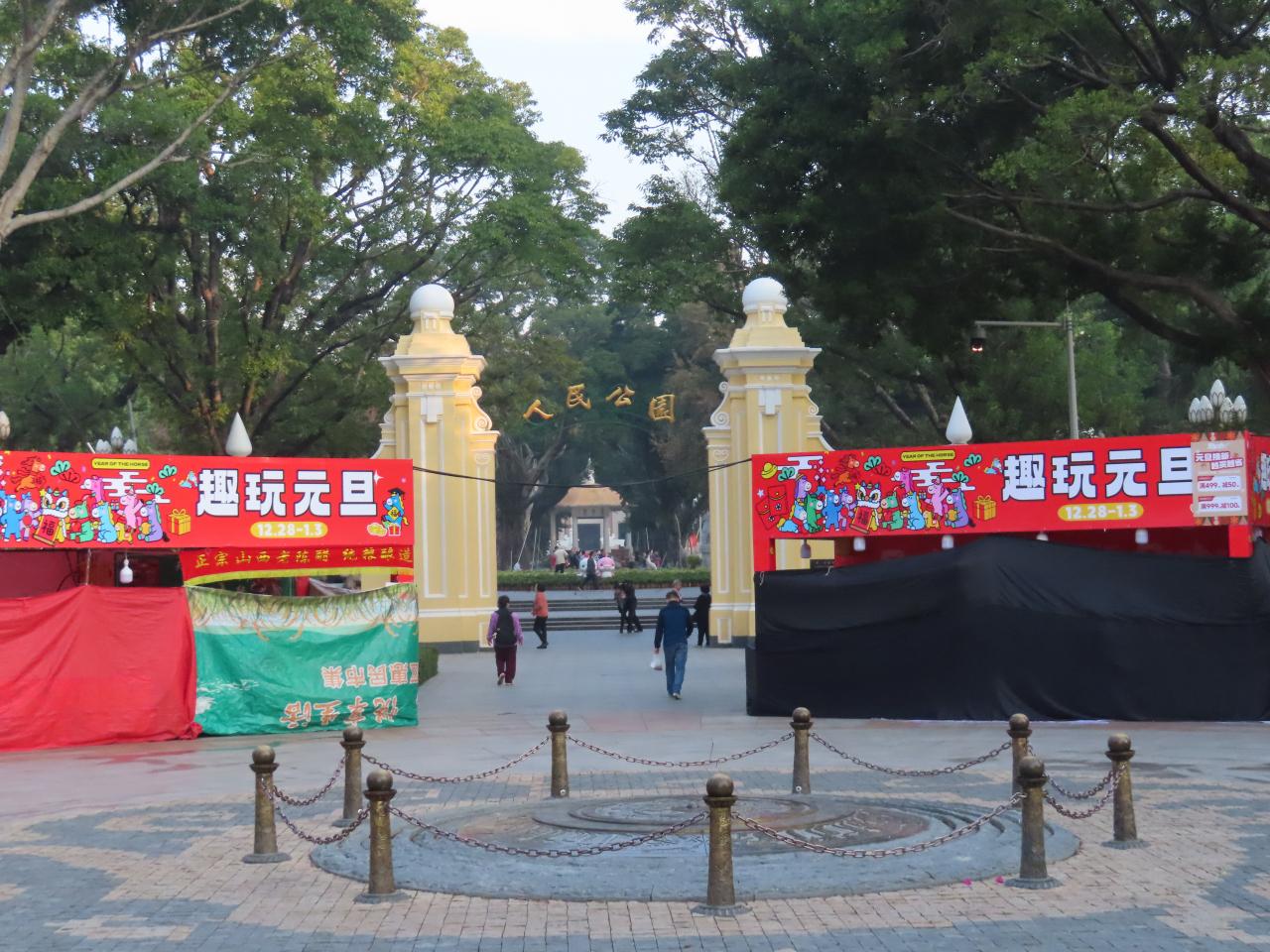 宿泊していたホステル(後方の建物の最上階)の目の前にある人民公園。