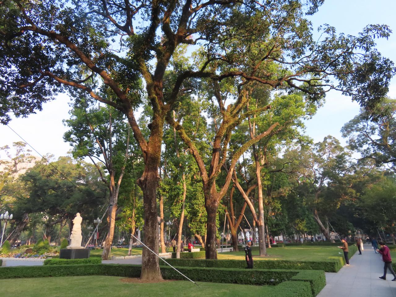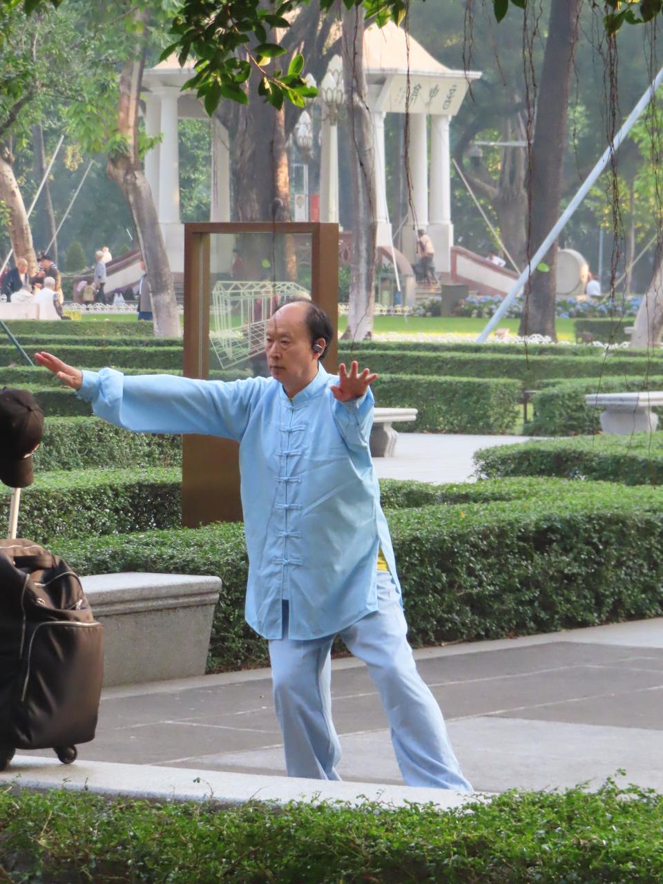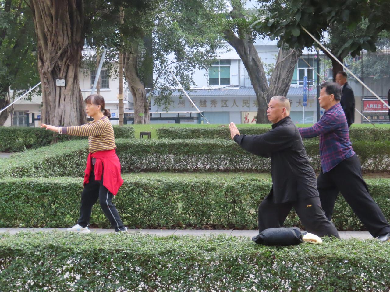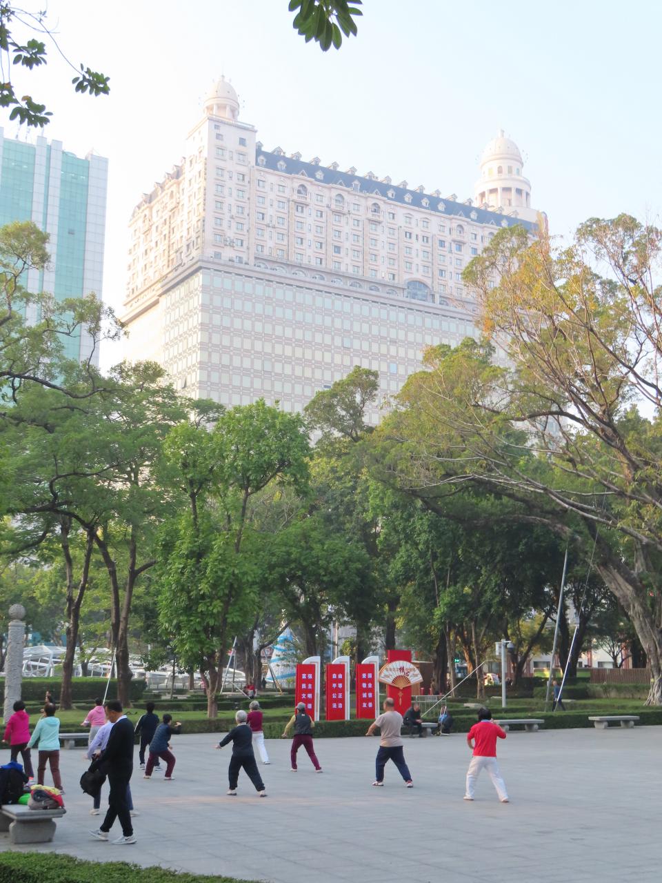 この日は平日の朝ですが、散歩する人、ジョギングする人、太極拳をする人、さまざまな朝の日常が垣間見れました。