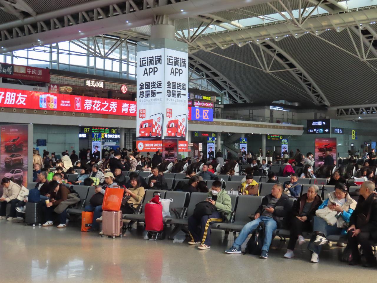 朝からなかなかの混雑ですが、これが春節や国慶節の大型連休になると、この比ではありません。コンコースが人で埋め尽くされます。 -