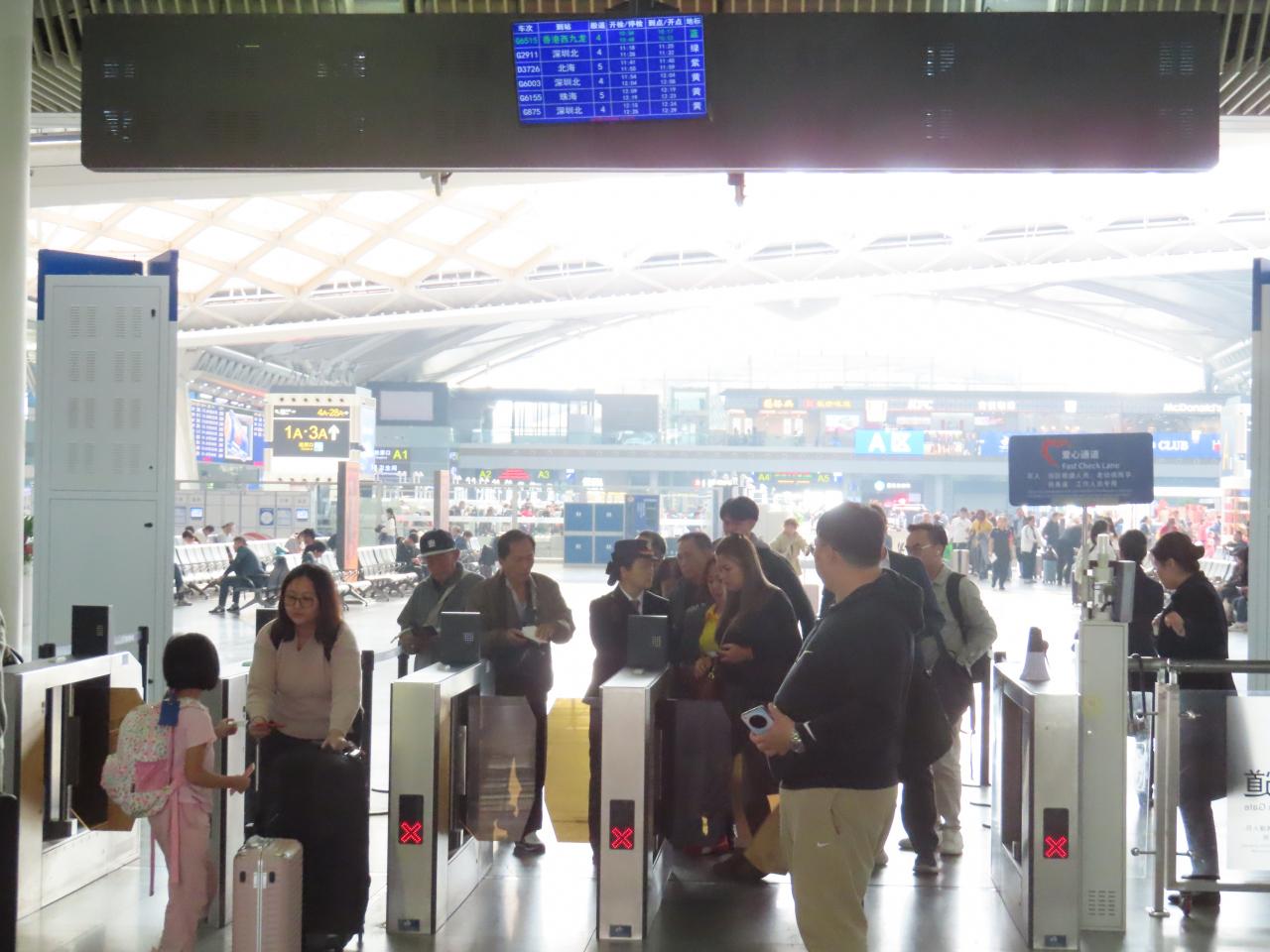 最大の特徴はこの駅で、香港の出国手続きと中国本土の入国手続き(またはその逆)をまとめて行える「一地両検」システムです。