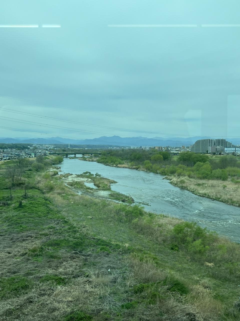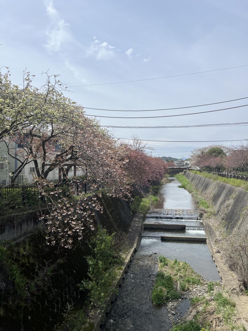 川沿いの景色。目の前は桜♪次は満開の時に来たいです♪