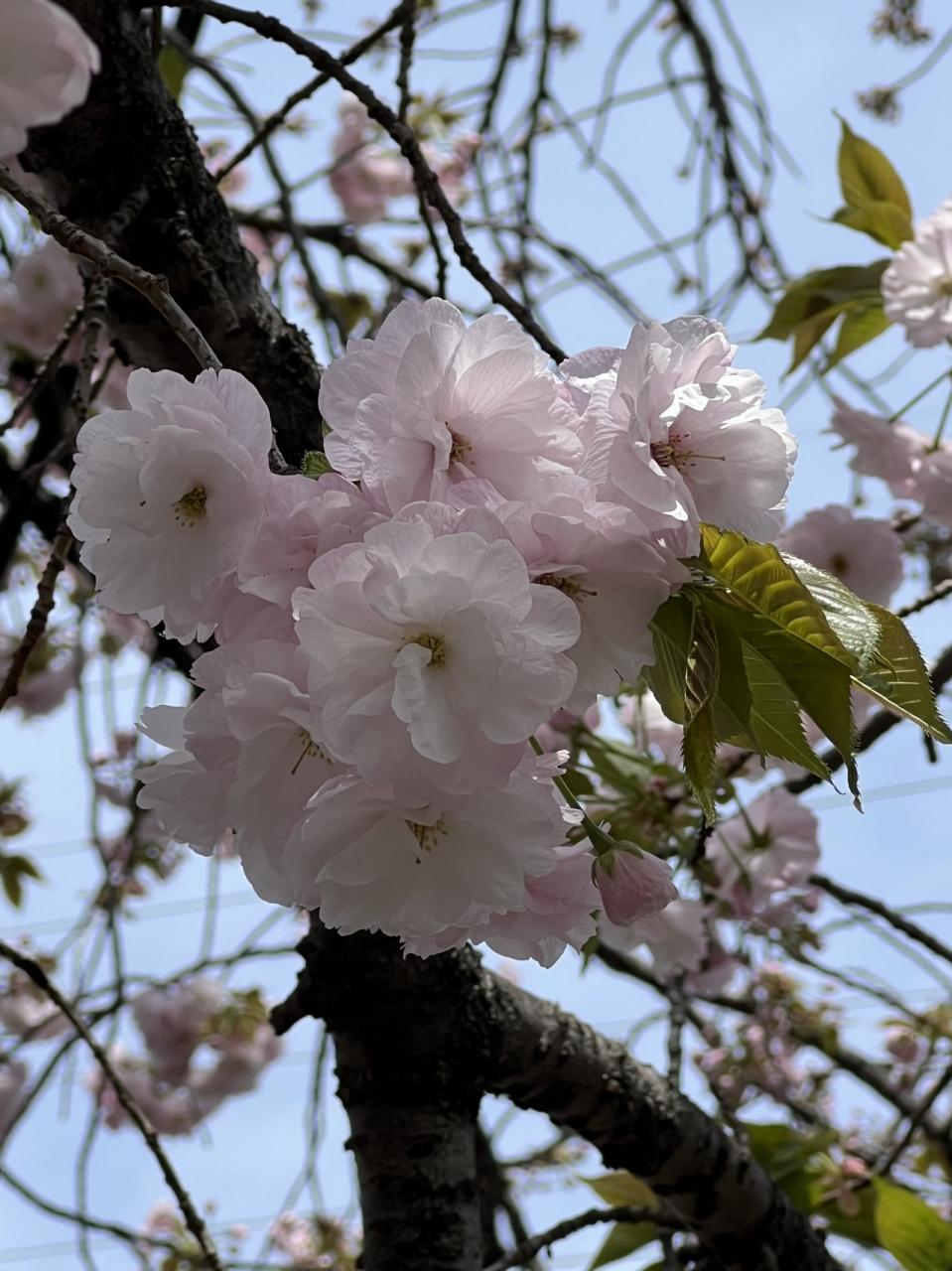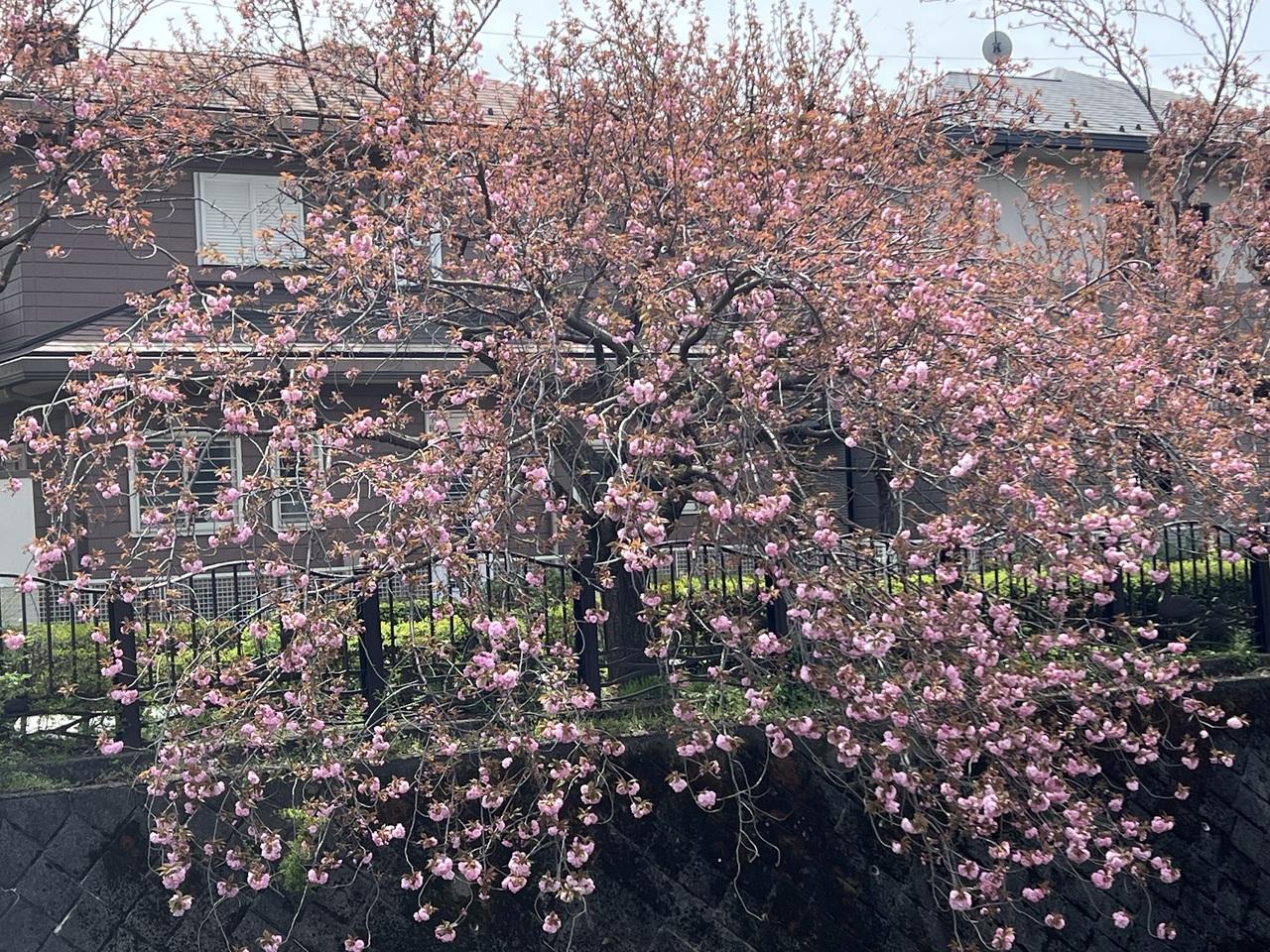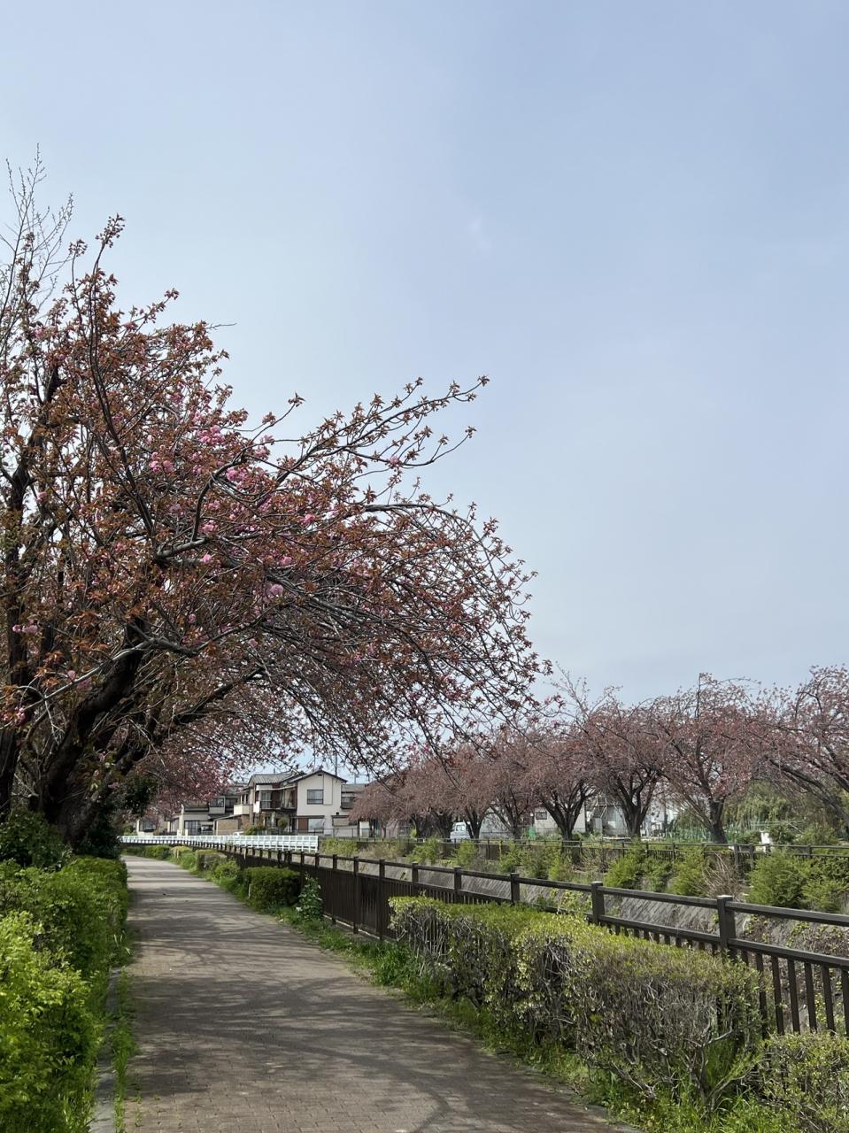 途中、多摩川から程久保川沿いに入ると、八重桜の道が、続いていました。のんびり気の向くまま散歩をしました。