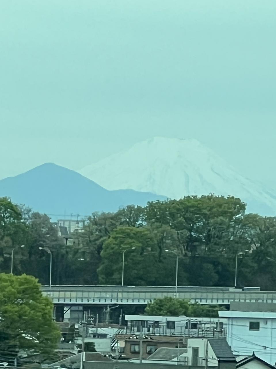 オカカフェの店内から♪富士山の頭がちょこんと見えました。まだ、真っ白♪