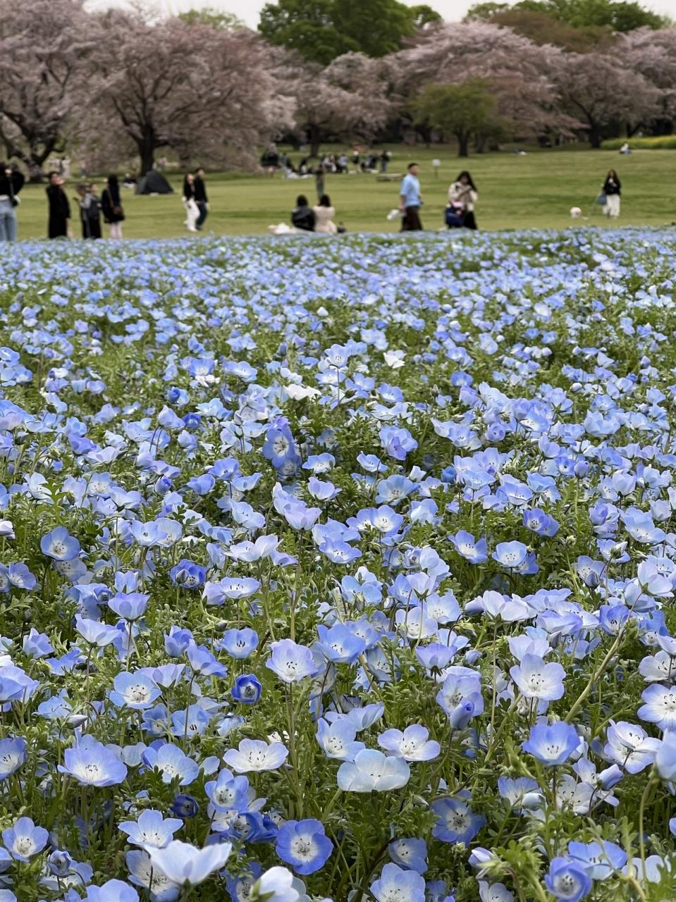 ネモフィラの先には、チューリップが見頃をむかえていました。