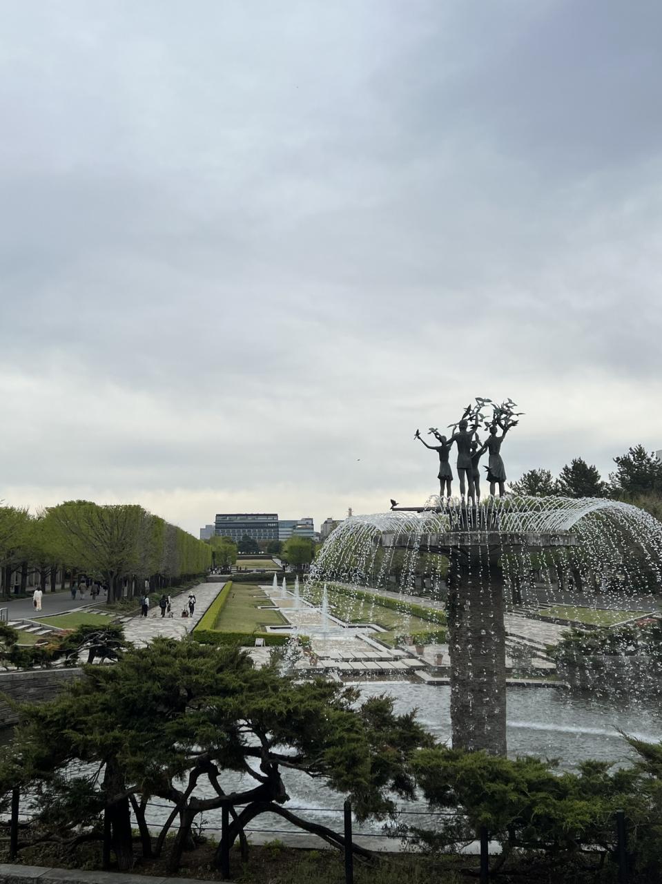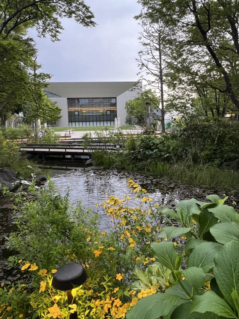 奥の建物は劇場。手前の池を含めて、全て人口に作られたお庭です。