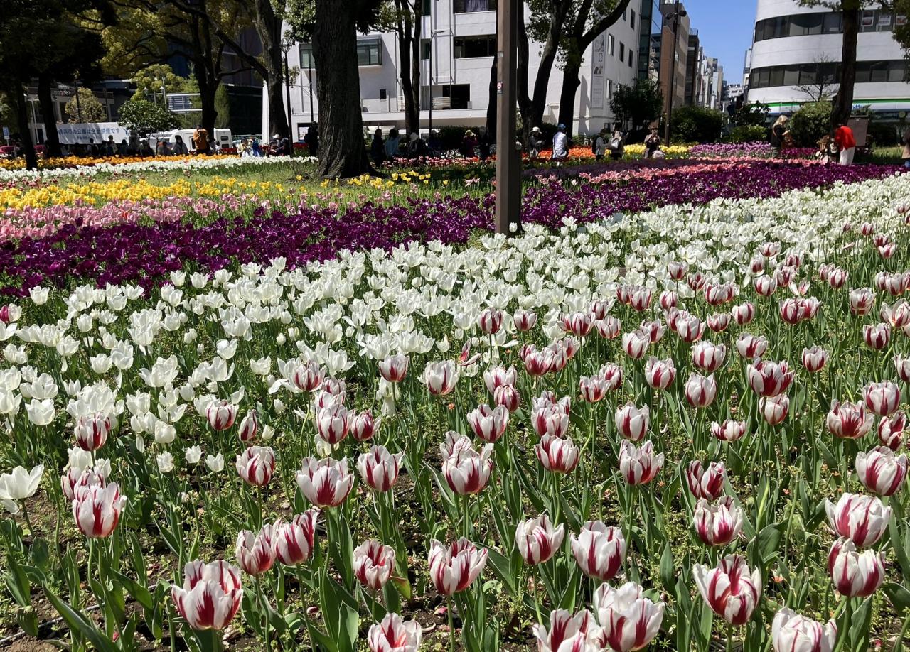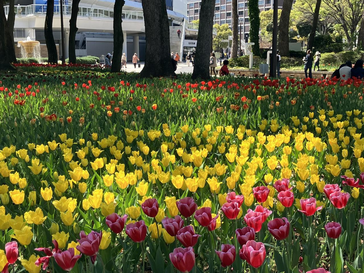 横浜公園は毎年10万本のチューリップが咲いています。