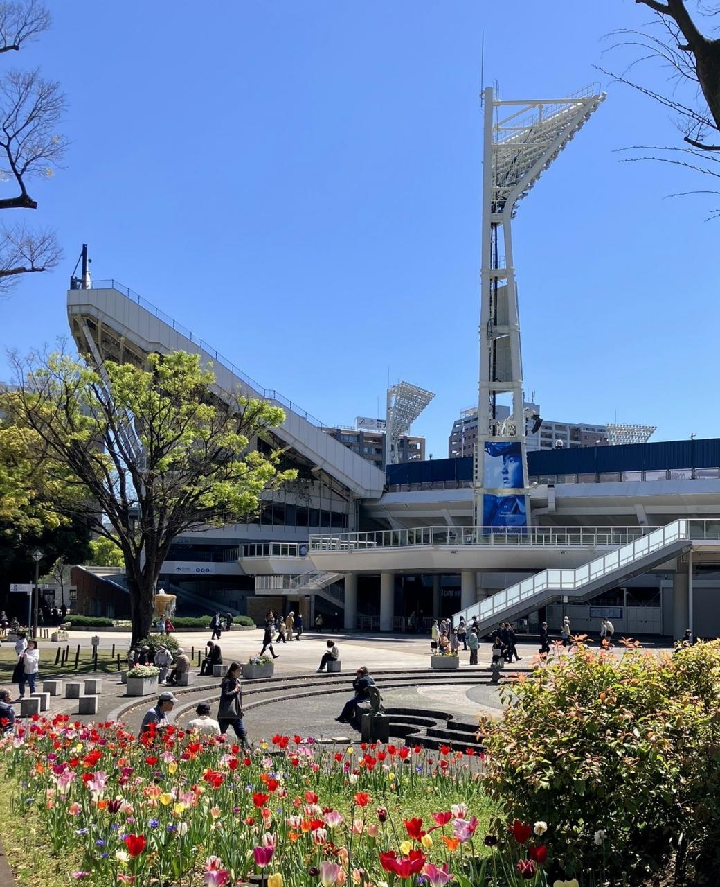 横浜公園に横浜スタジアム(通称ハマスタ)があります。