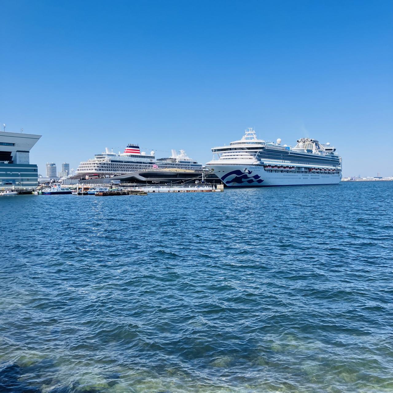 大桟橋には、大きな客船が停泊しています。山下公園 公園・植物園