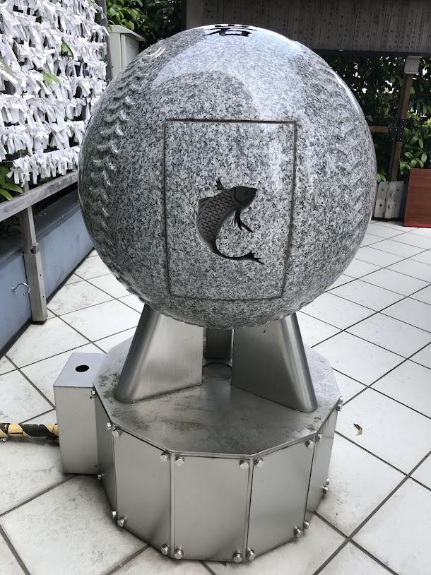 鯉の姿が彫られた丸い石が名物?