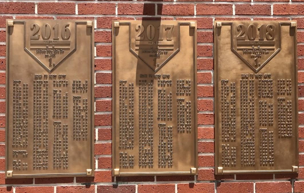 歴代の首脳陣と選手の名前が刻まれた、