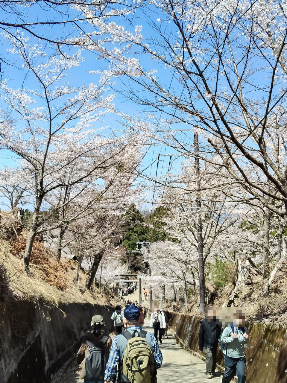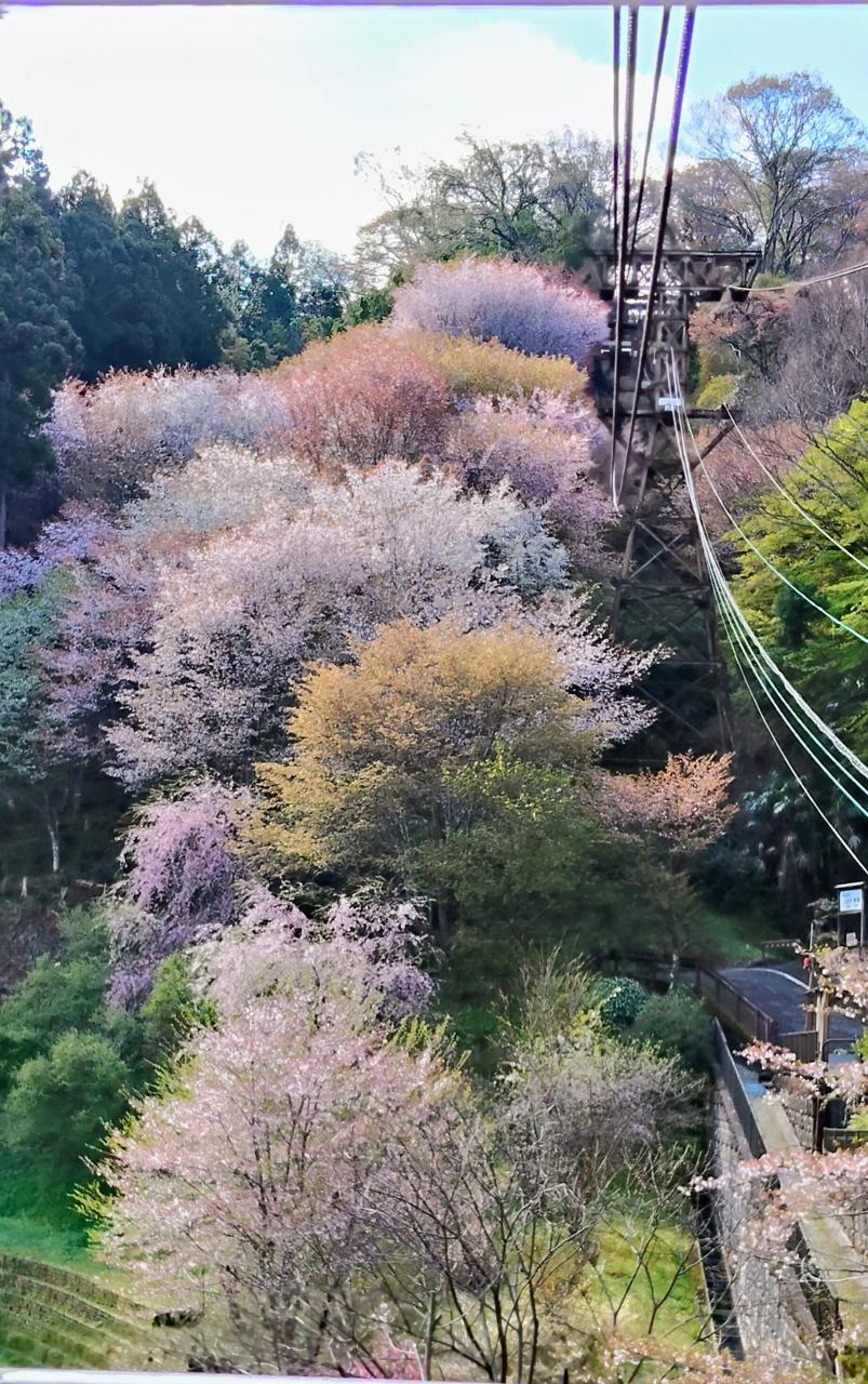 吉野駅から奥千本までの全工程のうち、ケールブカーによる下千本までは多分行程全体の5分の1程度と思う。残り5分の4を歩いて登る。 -