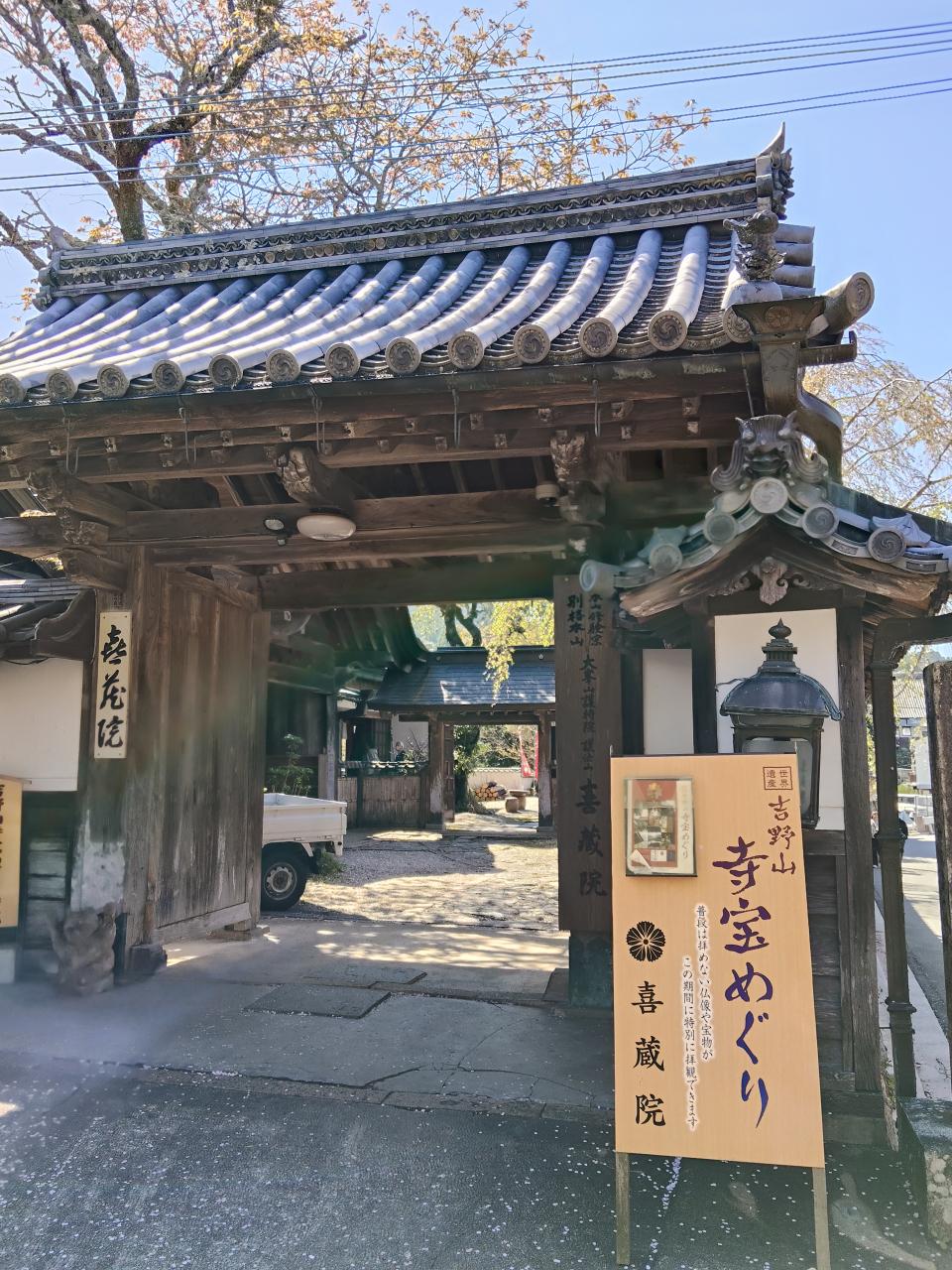庭園が有名な竹林院。この付近にバス停があり、奥千本へのバスが停まる。が、すごい行列で2時間半待ち、と言われた。 -
