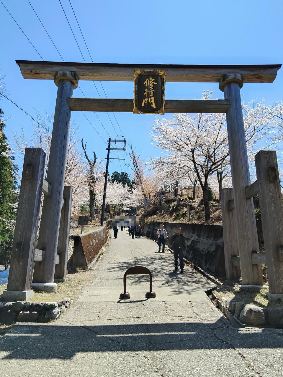 12時20分、奥千本・金峯(きんぷ)神社の鳥居。この手前に奥千本口のバス停があります。既に下山するためにバスを待つ人々が長い行列を作っている。