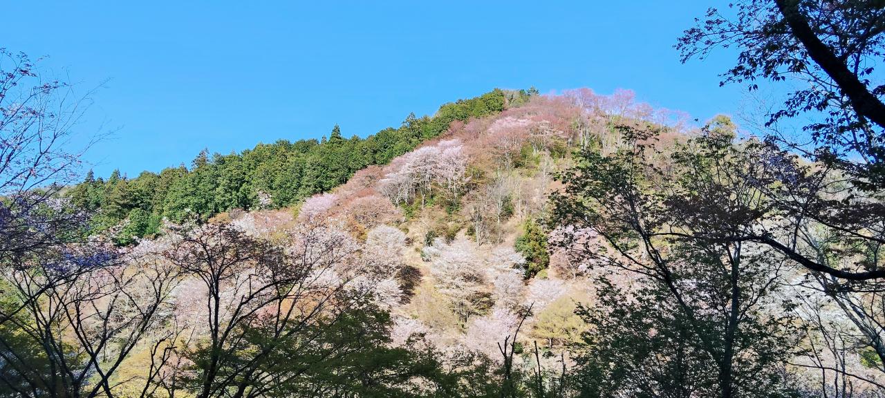 こちらは参道左手の高いところに登って撮ったもの。奥千本の桜はまだ5分か八分咲き。