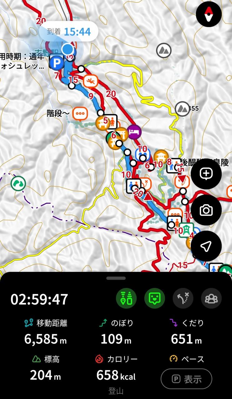 YAМAPのアプリがあるのに、登りではセットし忘れ、奥千本の金峯山神社からの下りのみ、記録することができました。