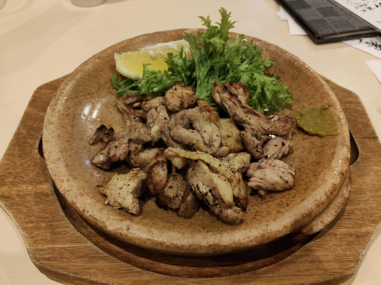 地鶏の炭火焼き(多分セセリ)。