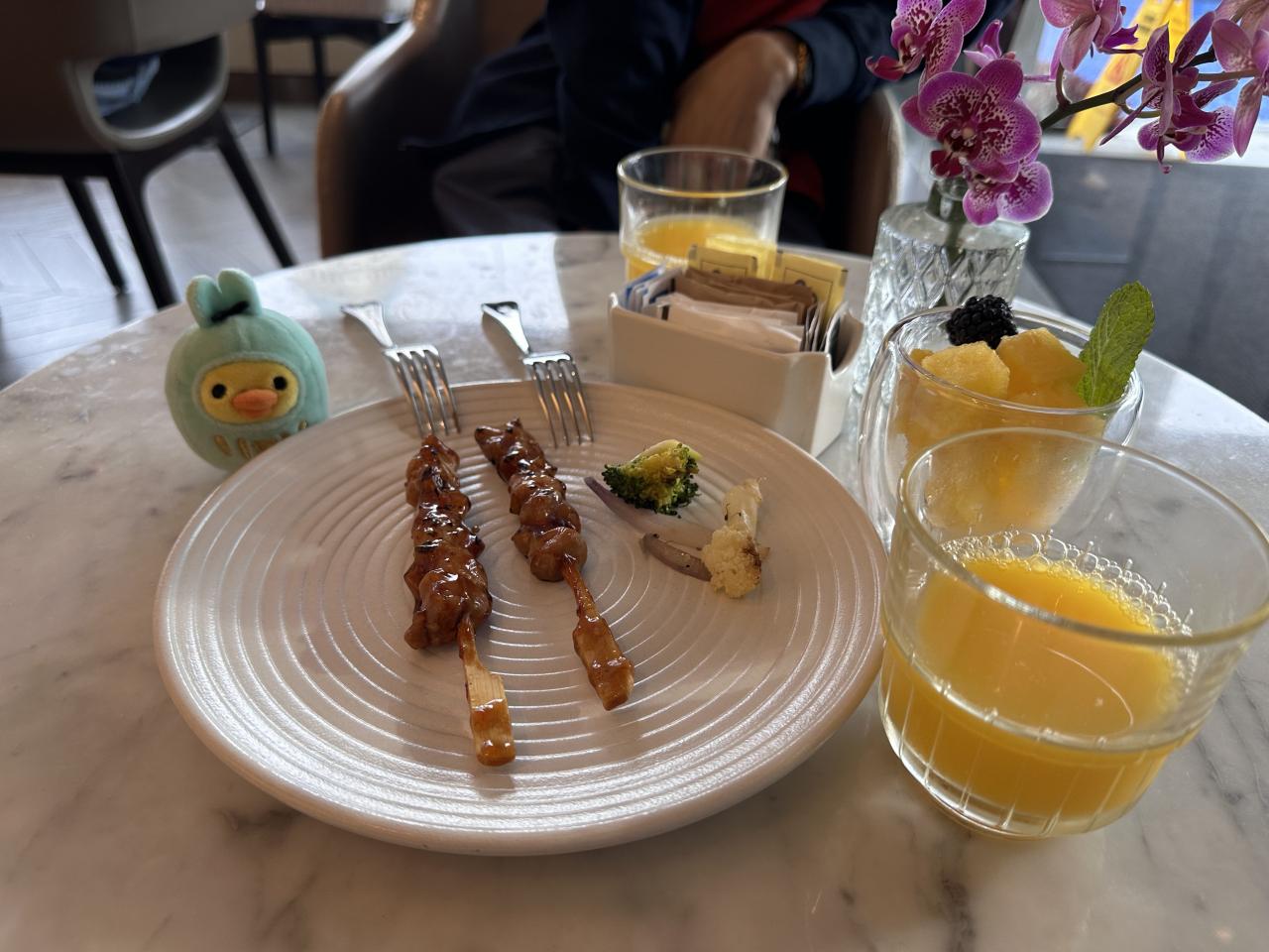 マリオットのプラチナ会員は朝食は無料にゃ。