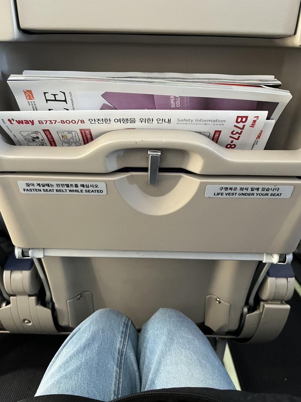 往復20000円台の激安チケットなので、狭かろうが、うるさかろうがあまり文句は言えない・・・。前の座席にメッシュの物入れがないなんて、初めてかも。ペットボトルはどこに置いたら良いのか。