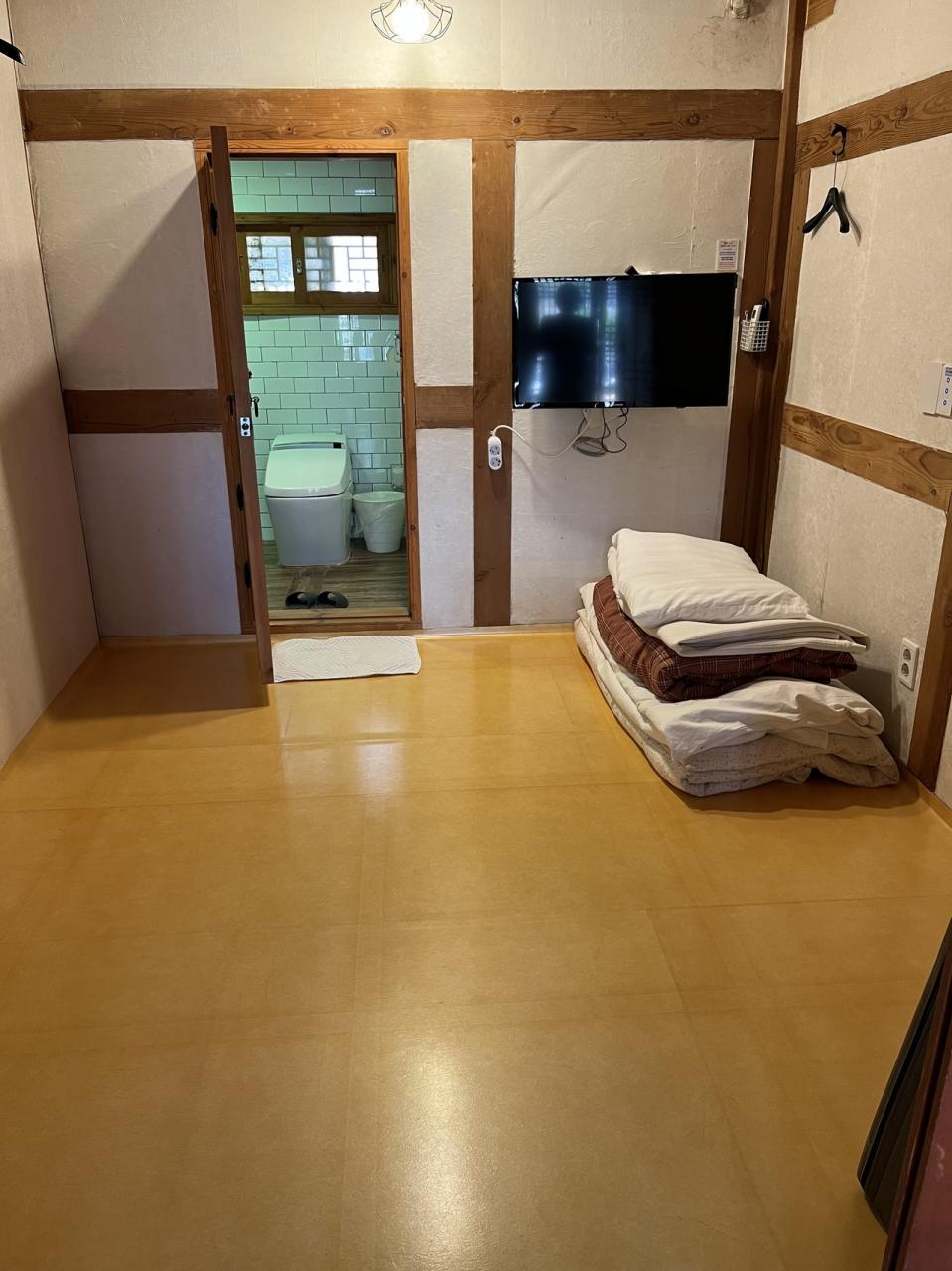 部屋はオンドルでとても温かい。