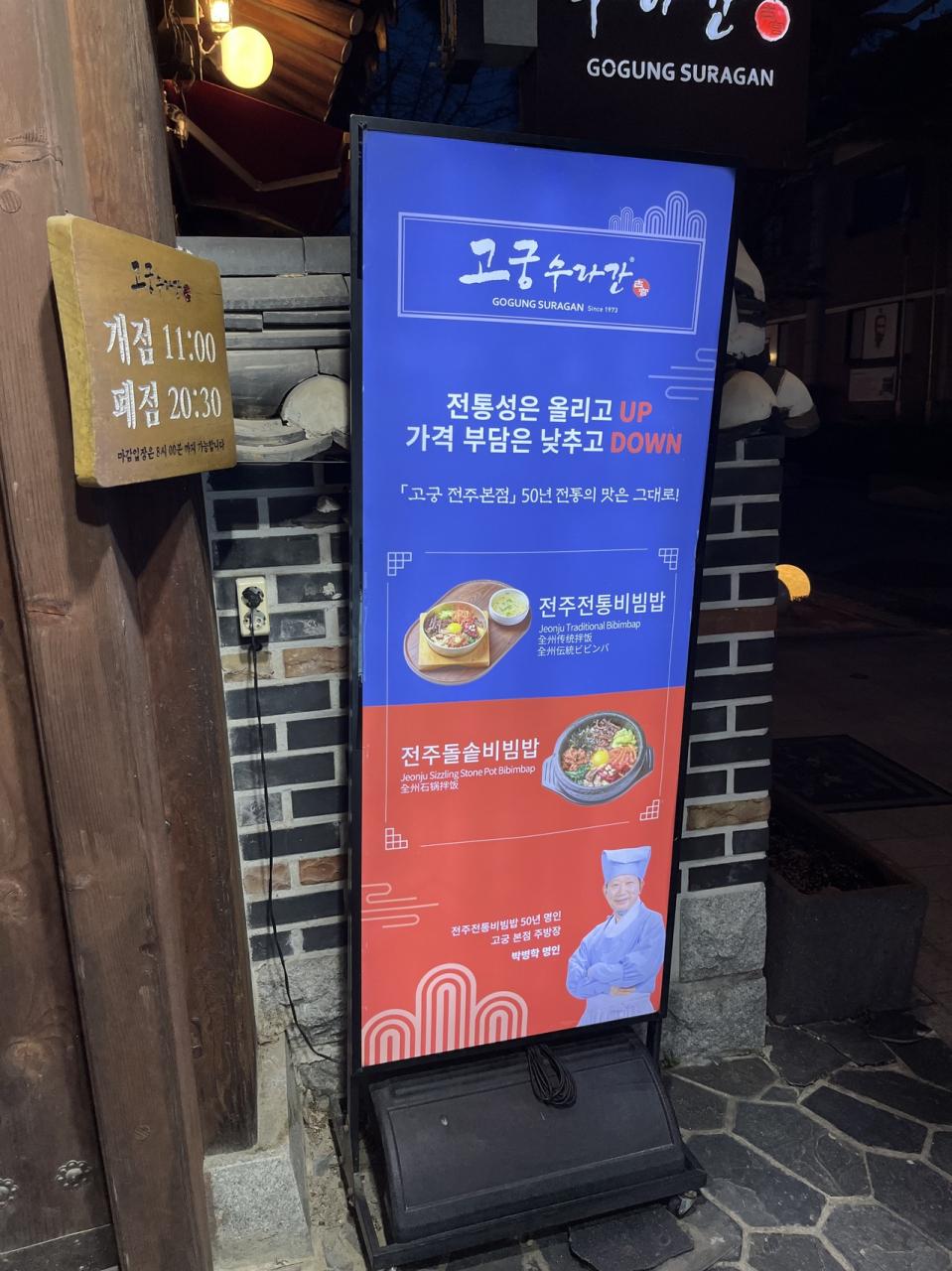 全州はビビンバ発祥の地なので、有名どころもたくさんありますが、宿からほど近い、「古宮スラッカン 韓屋マウル店」へ。 -