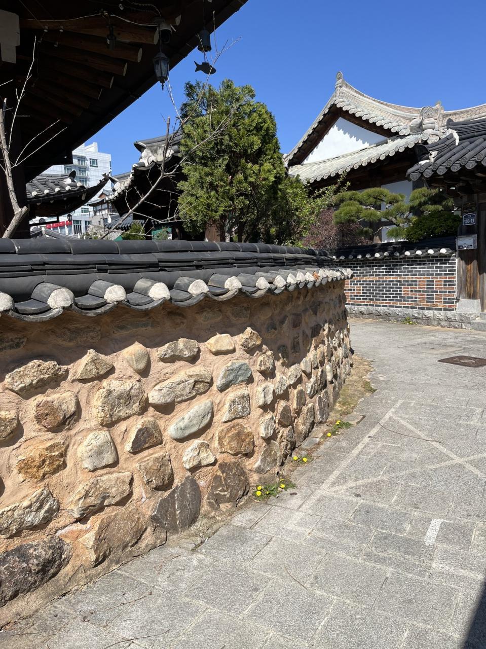 韓屋造りも素敵ですが、この石畳と城壁も良いですよね。
