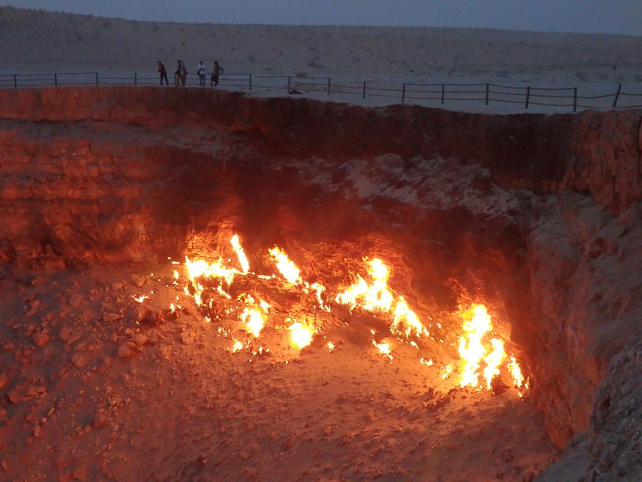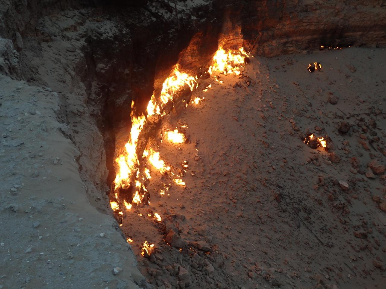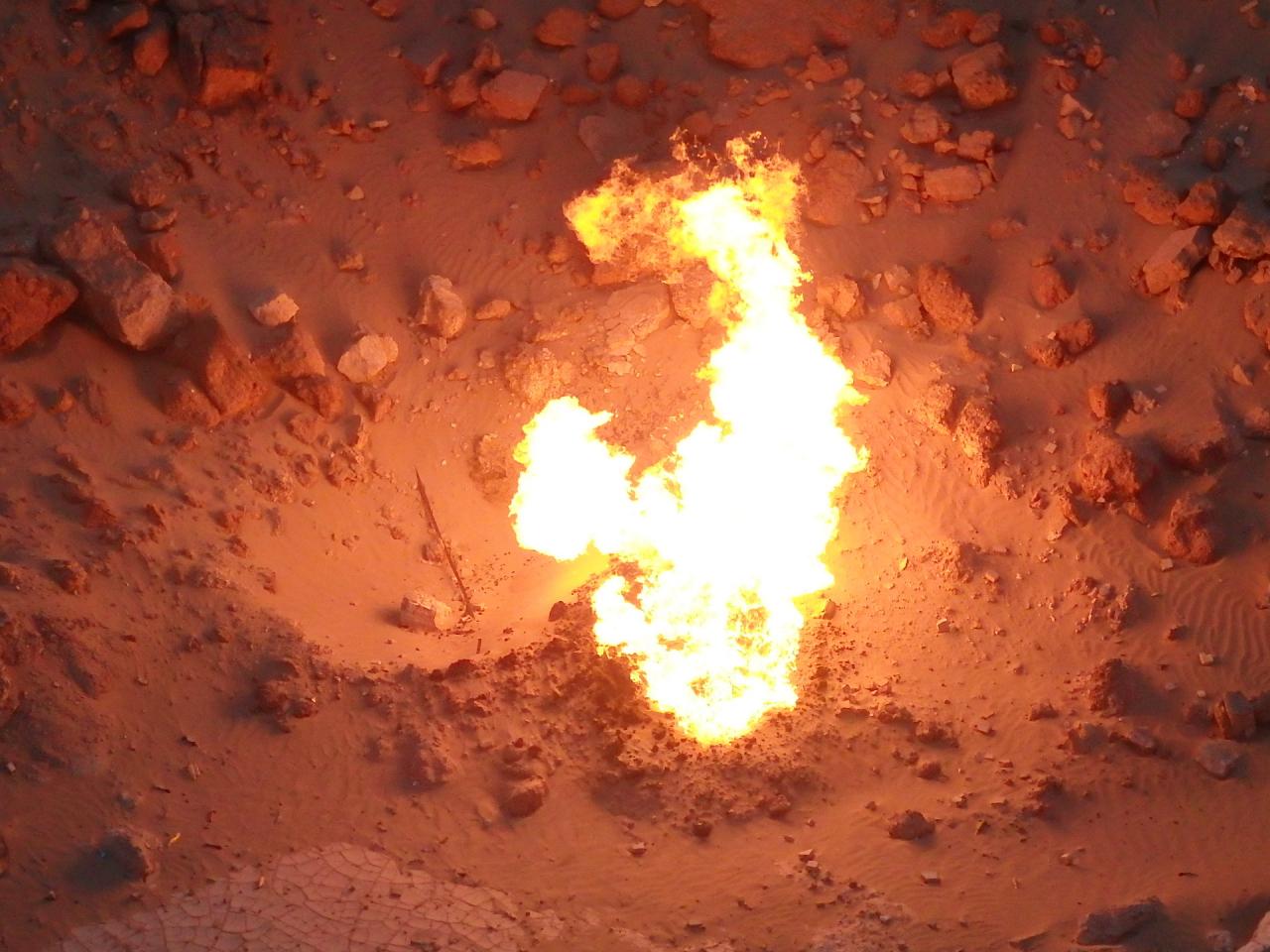 有毒ガスの周辺への放出を防ぐためにガスに火を付け、炎が数日で消えることを期待したものの、ガスは吹き出し続け、それから50年以上も燃え続けてるとゆう、ほんまに!?なところ。