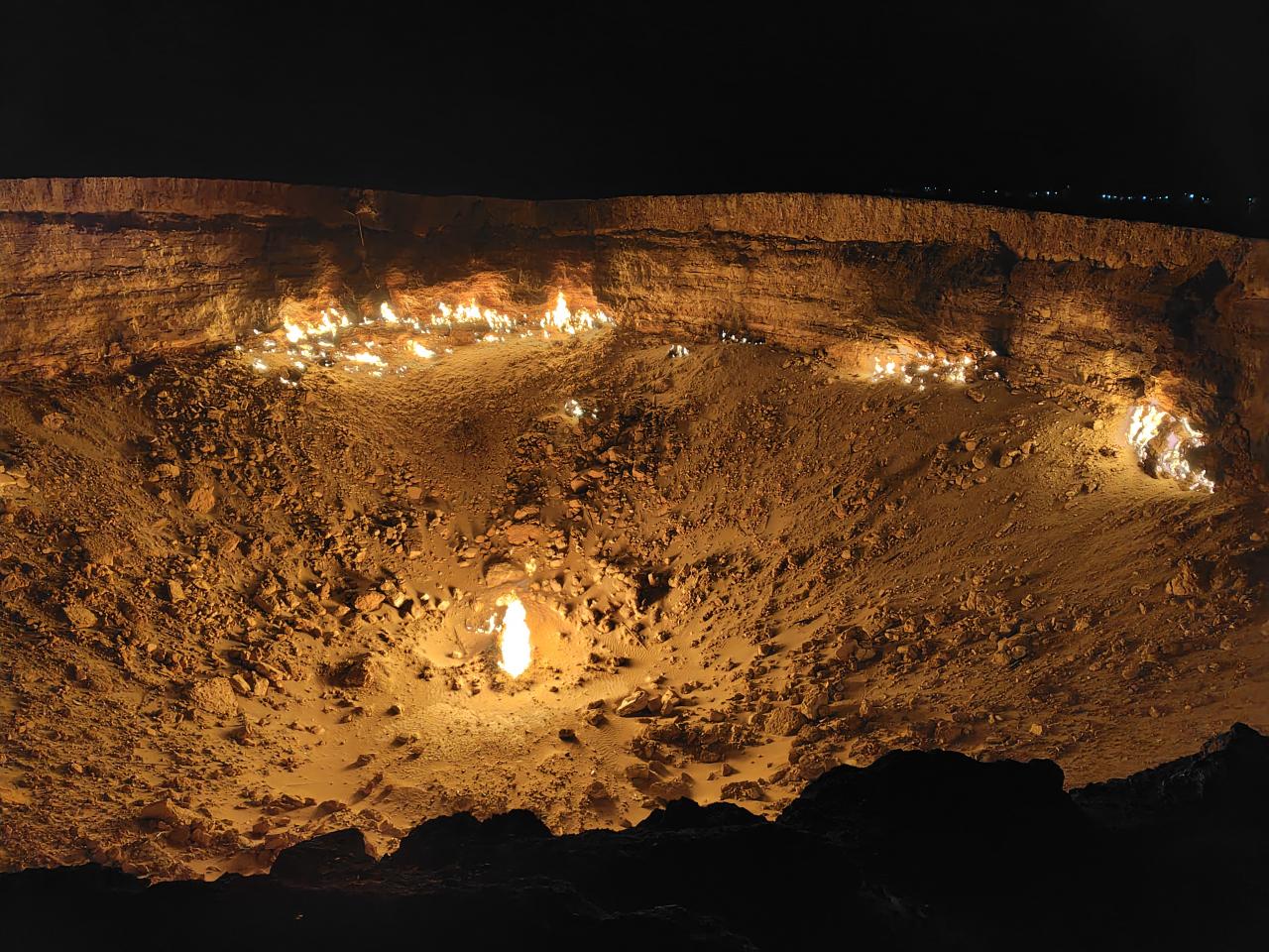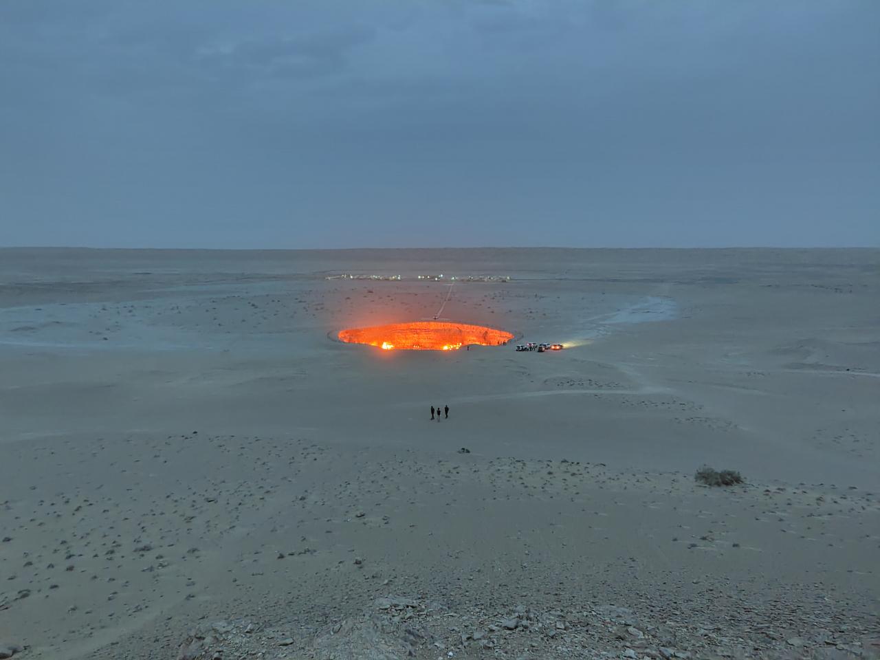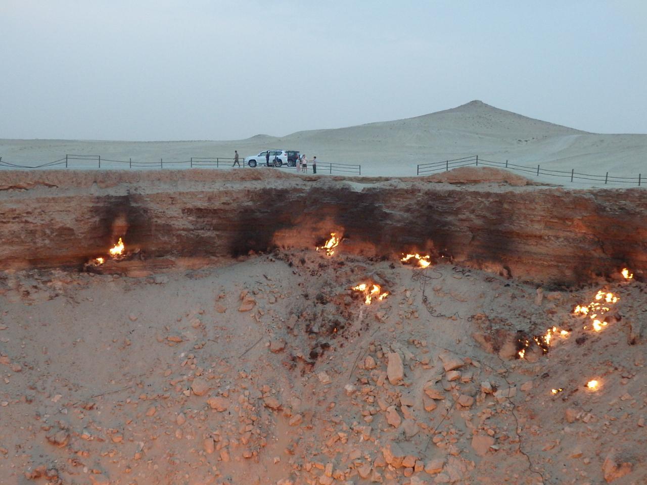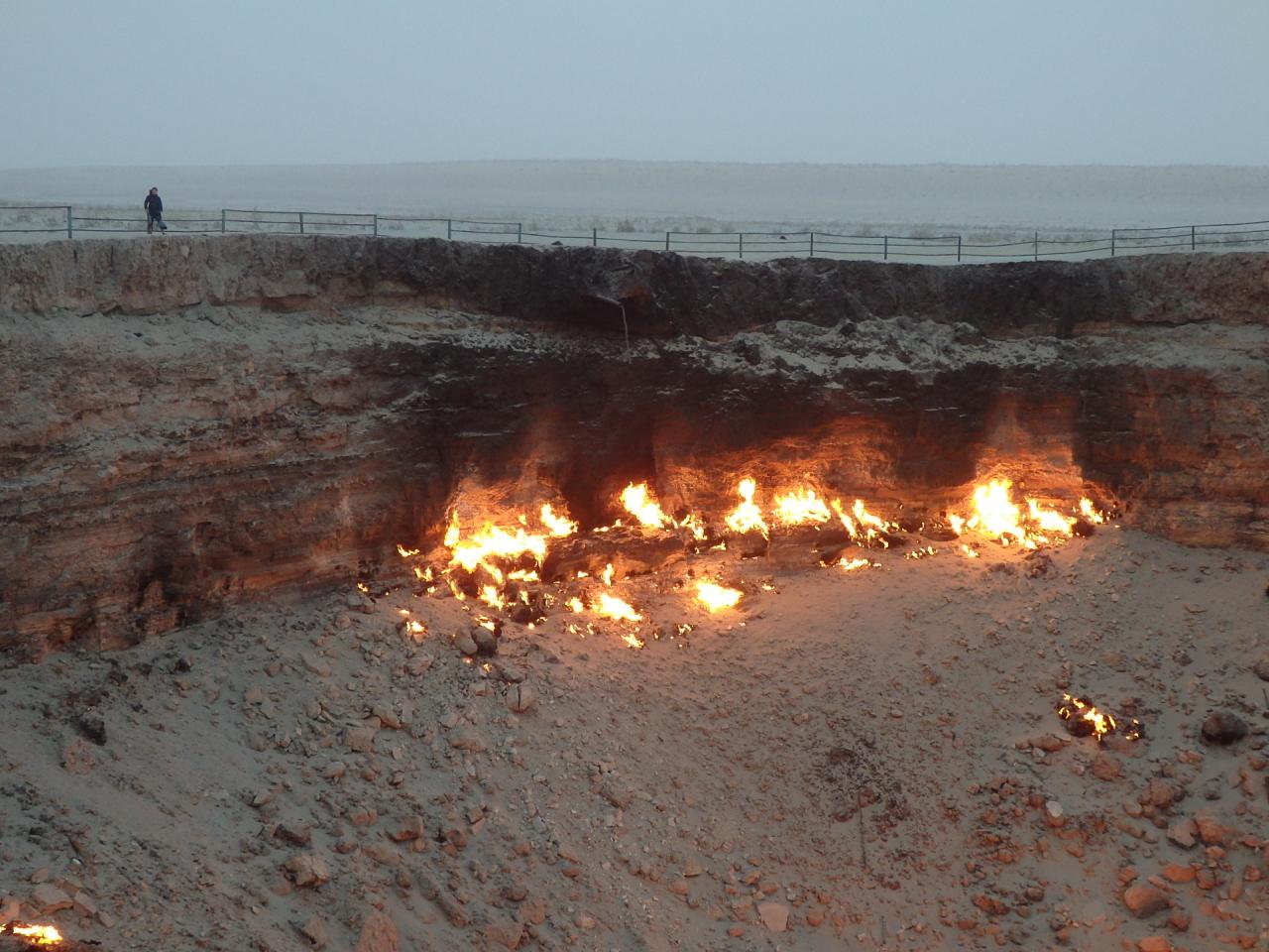有毒ガスの周辺への放出を防ぐためにガスに火を付け、炎が数日で消えることを期待したものの、ガスは吹き出し続け、それから50年以上も燃え続けてるとゆう、ほんまに!?なところ。