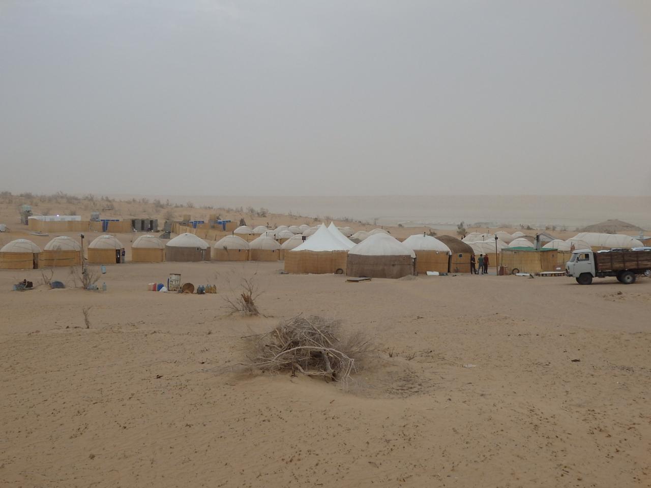 3日目、朝一にウズベクのウルゲンチに到着し、国境を越えてトルクメへ。