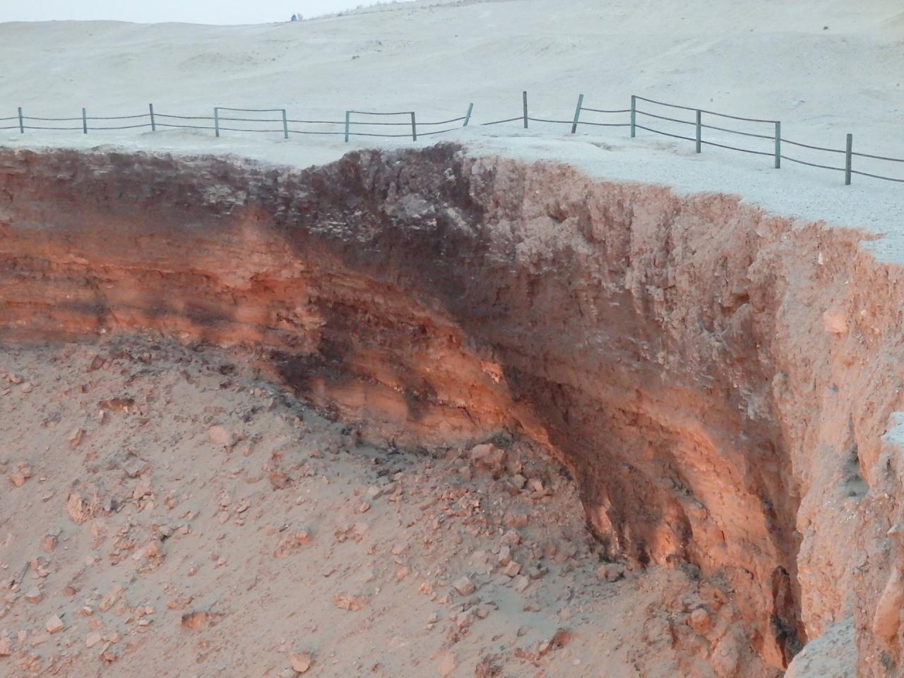 旧ソ連の地質学者が、ボーリング調査中に天然ガス(メタンガス)が満ちた洞窟を発見したが、その調査中に洞窟が崩落してクレーターに。